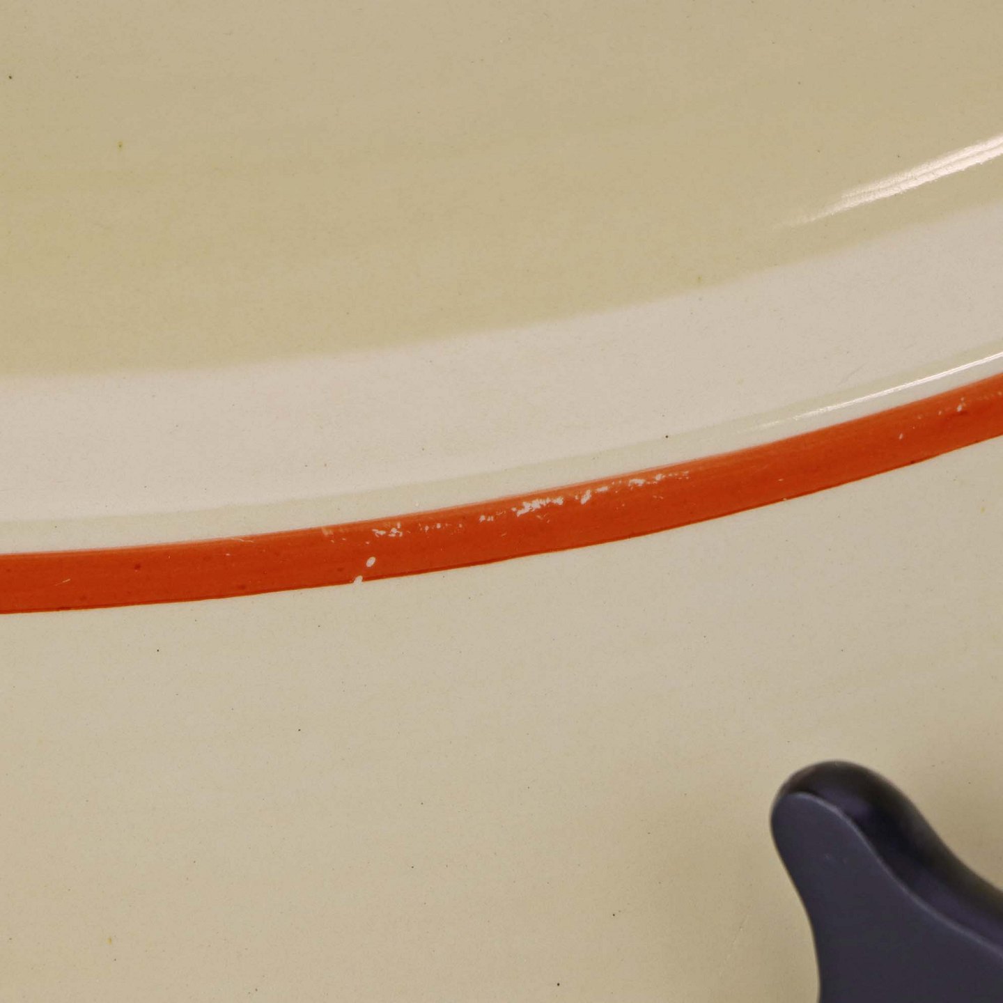 Fremstår med brugsspor på dekorationen samt mindre misfavning i glasuren på bagsiden.