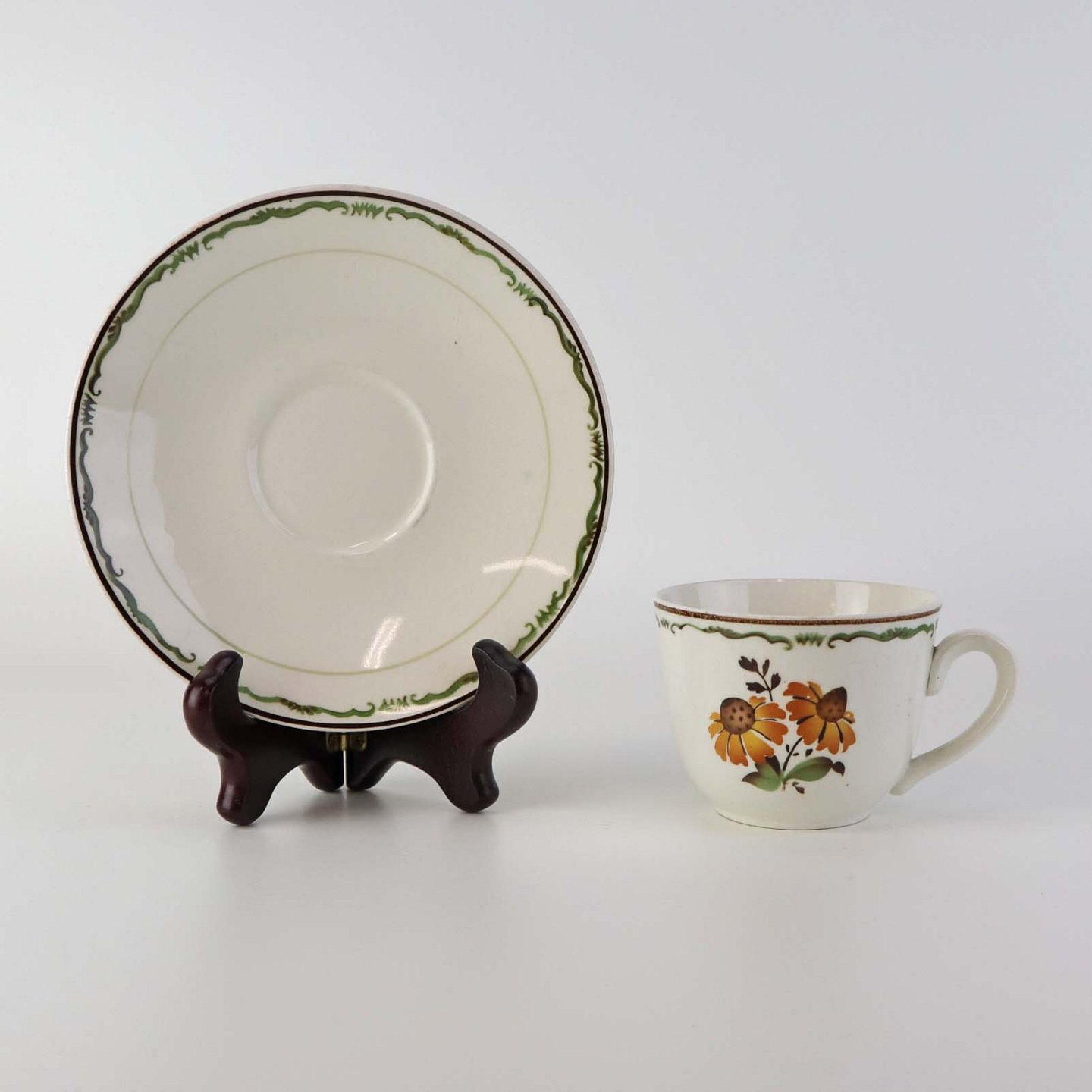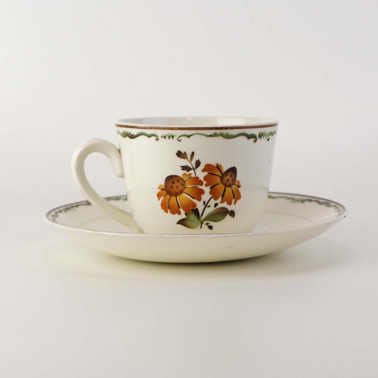 Text zugänglich auf Dänische: Kaffekop med underkop i fajance fra stellet Solbrud fremstillet i perioden 1937-1967. Nr. 2049