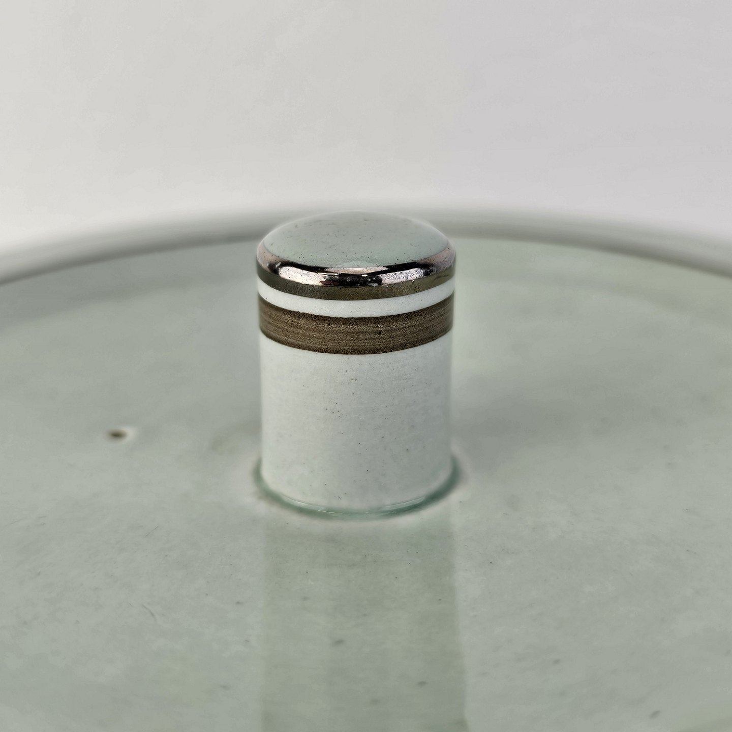 Stel i lysegrøn fajance med natur dekoration og flettet kant