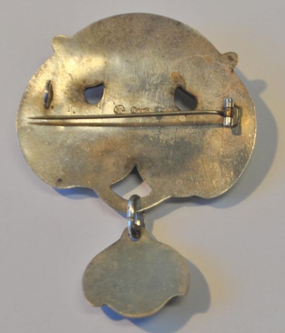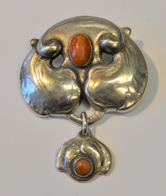 Dänischer Silberschmied, 20. Jahrhundert: Jugendstilbrosche mit Bernstein.