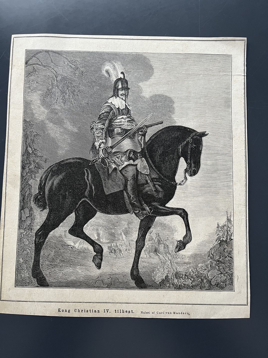 Text zugänglich auf Dänische: Xylografi af Frederik Hendriksen - HM Kong Christian IV til hest efter maleri af Karel van Mander.