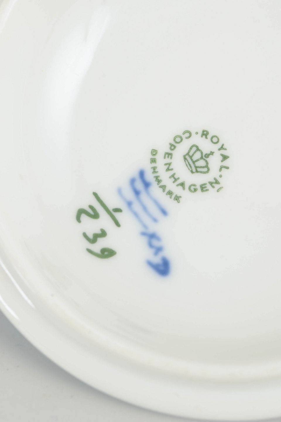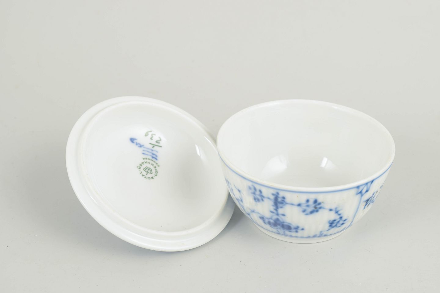 Text zugänglich auf Dänische: Royal Copenhagen, sukkerskål, Musselmalet riflet.