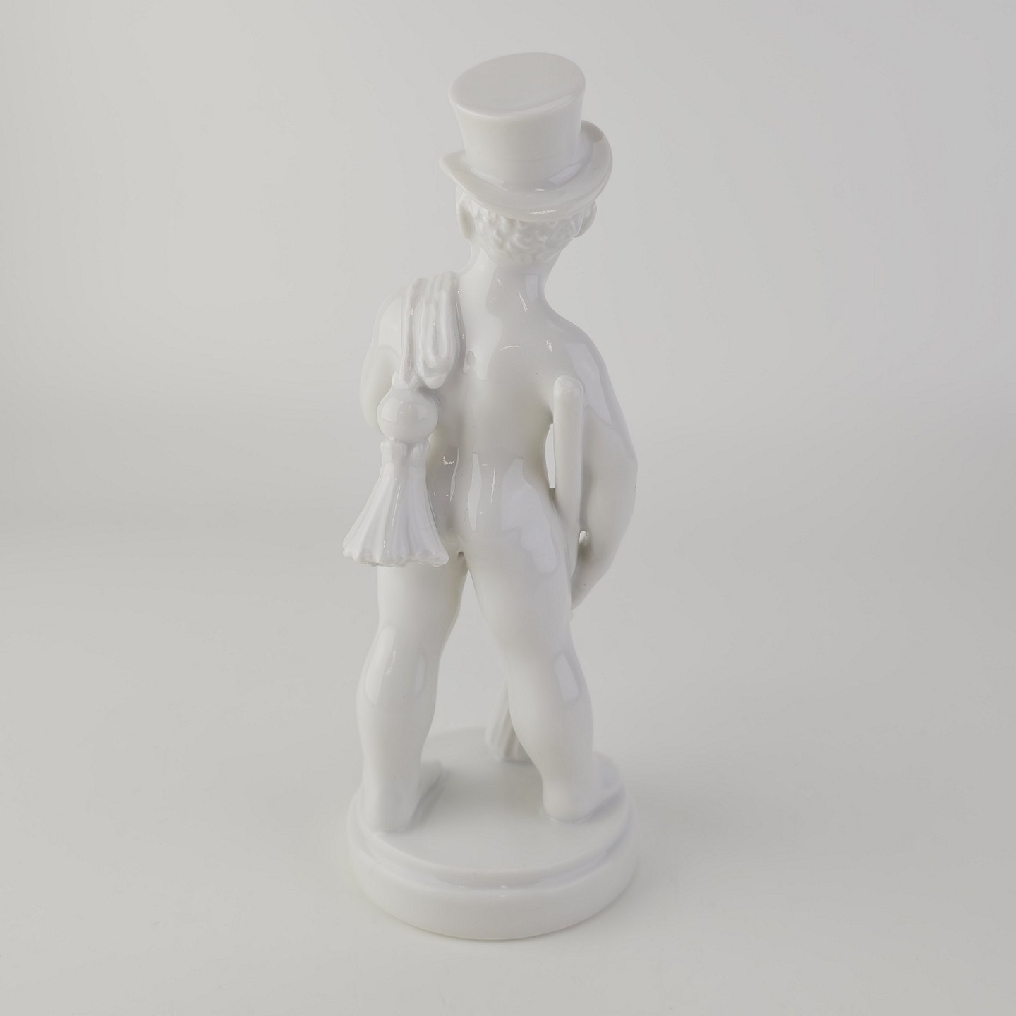 Figur i hvidt porcelæn med motiv af en skorstensfejer