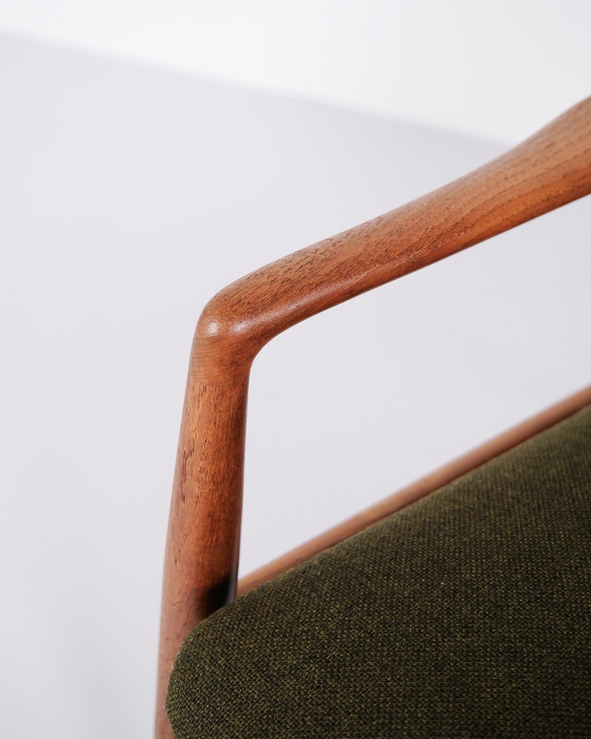 Ein Paar Lounge-Sessel mit Hocker – Teak – Grüner Stoff – Alf Svensson – Fritz Hansen – 1960er Jahre
