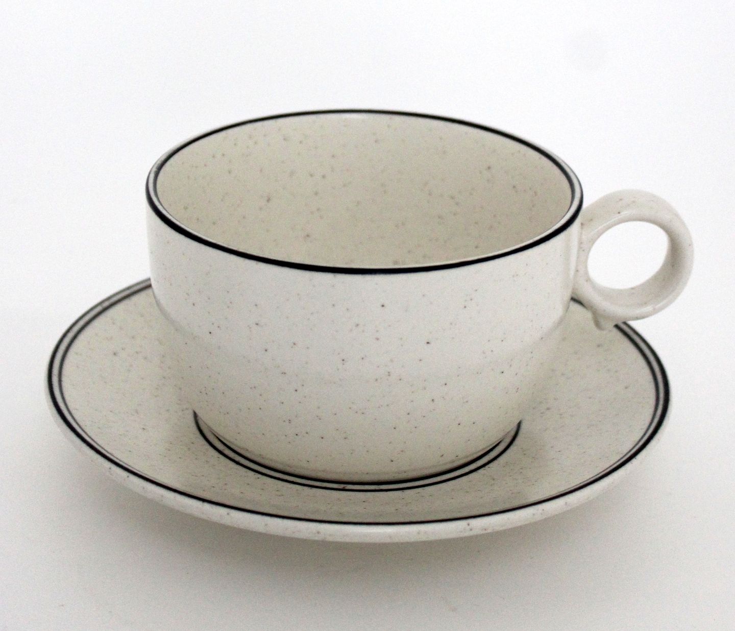 Text zugänglich auf Dänische: Gustavsberg senere Arabia, Birka, Tekop med underkop. Designet af Stig Lindberg. Produceret i perioden 1973-1987. Mærke: Gustavsberg Stengods VDN S555 Sweden, owen, table, dishwater. Mærke: Arabia Finland.