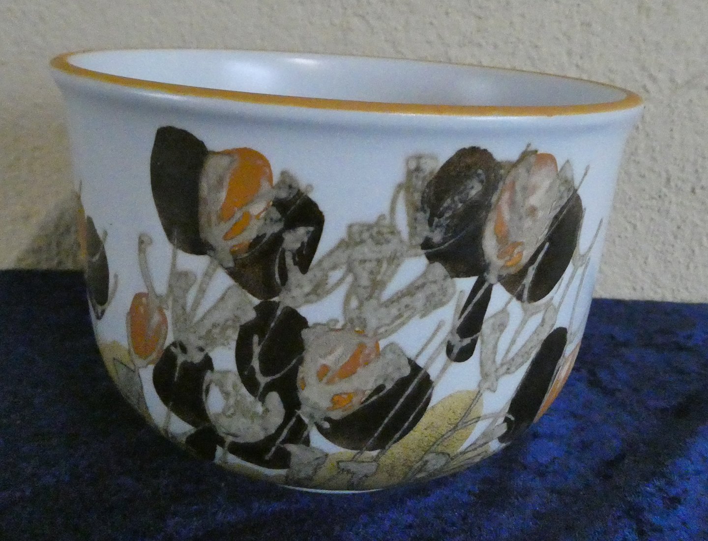 Blumentopfdeckel Nr. 962/3758 aus 1. Wahl und in perfektem Zustand. Wunderschön verziert mit gelbem Rand.