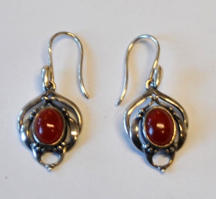 Georg Jensen Ohrringe aus Sterlingsilber mit Karneolen, 2016. Gestempelt. Höhe: 3,4 cm.