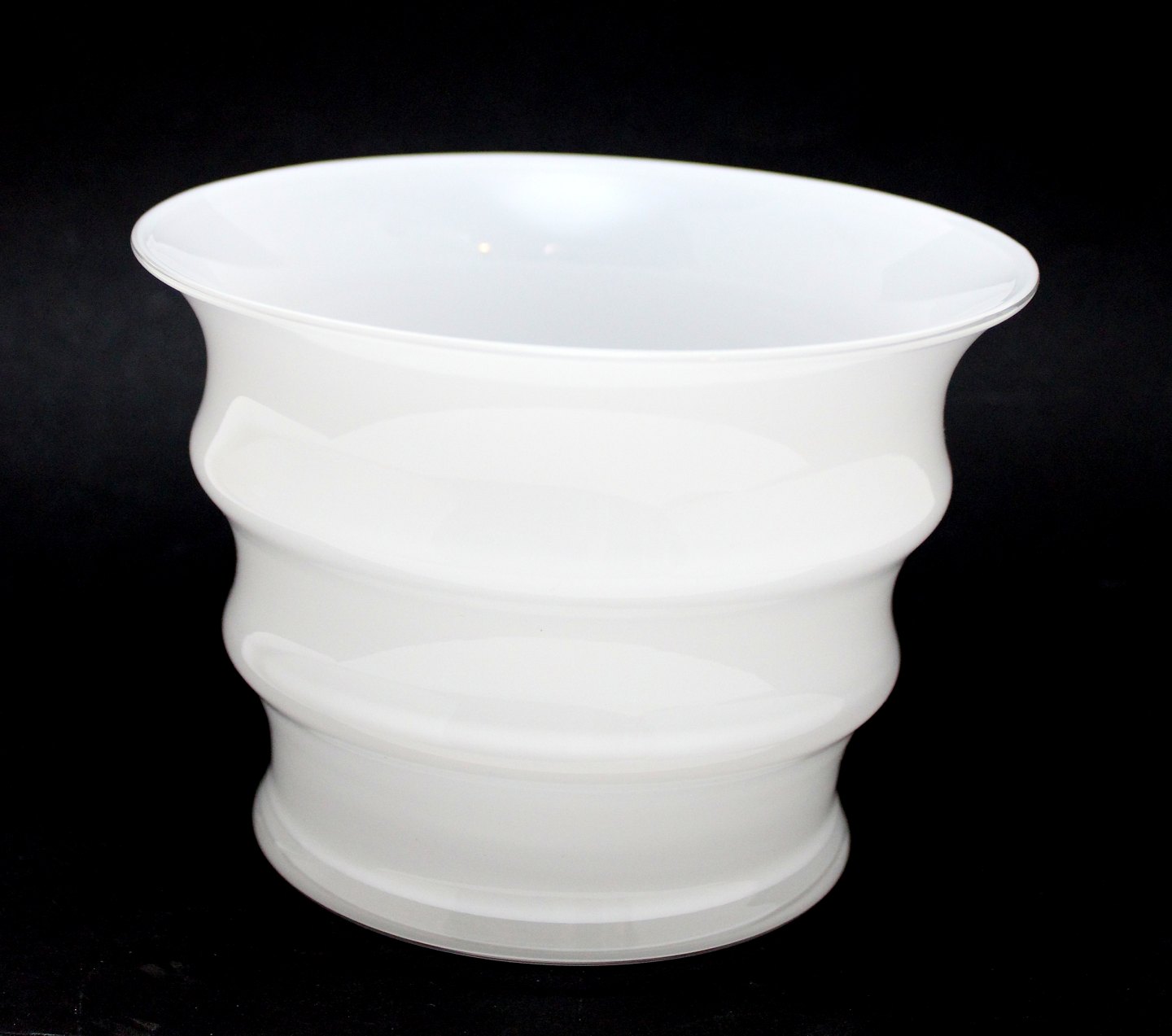 Text zugänglich auf Dänische: Holmegaard, Karen Blixen, Mellemstor urtepotteskjuler i opalhvid. Designet af Anja Kjær fra 2000. Højde 10,5 cm. Diameter 15 cm. Pris: 375 kr. stk. Lager: 1