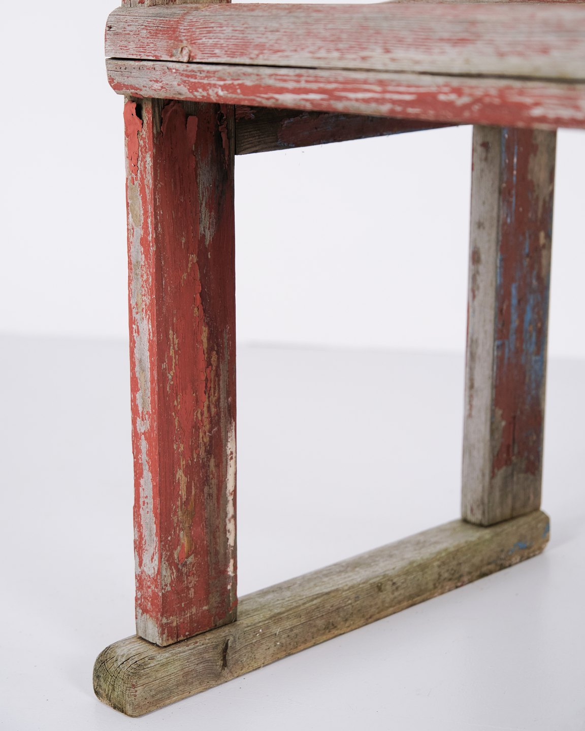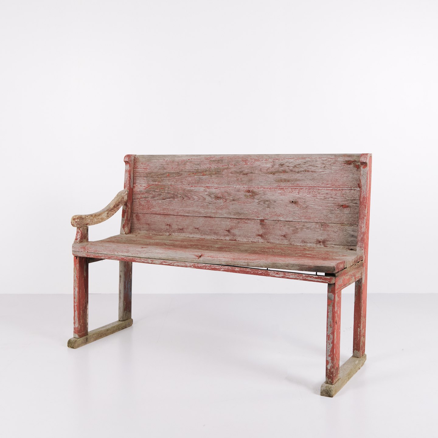 Bank - Original Rot Lackiert - Kiefernholz - 1860er Jahre