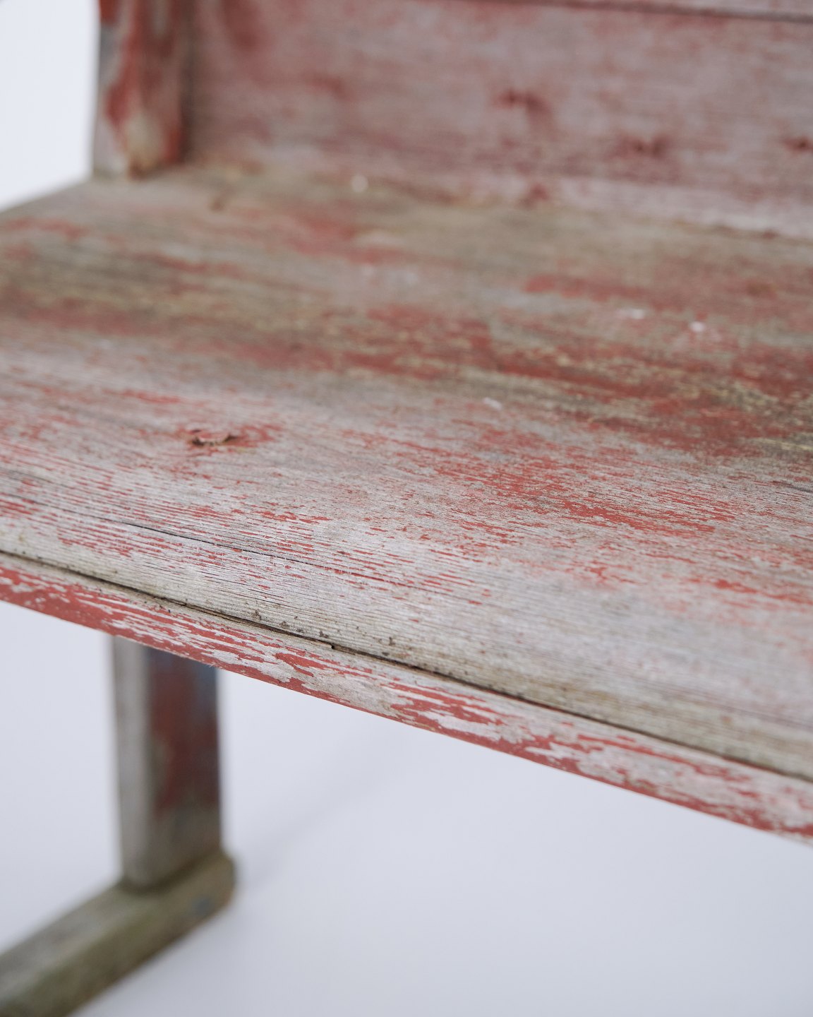 Antike Bank aus den 1860er Jahren aus original rot lackiertem Kiefernholz. Antike rot lackierte Bank aus dem 19. Jahrhundert.