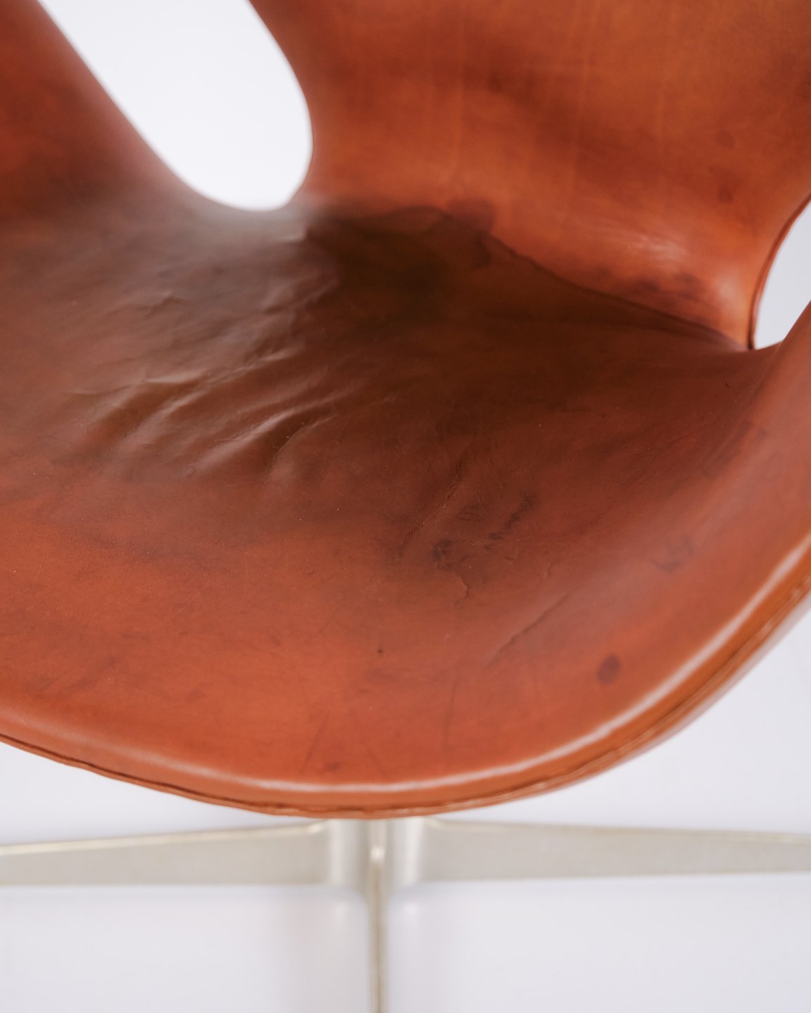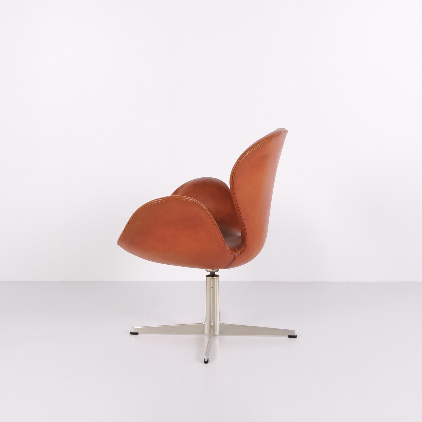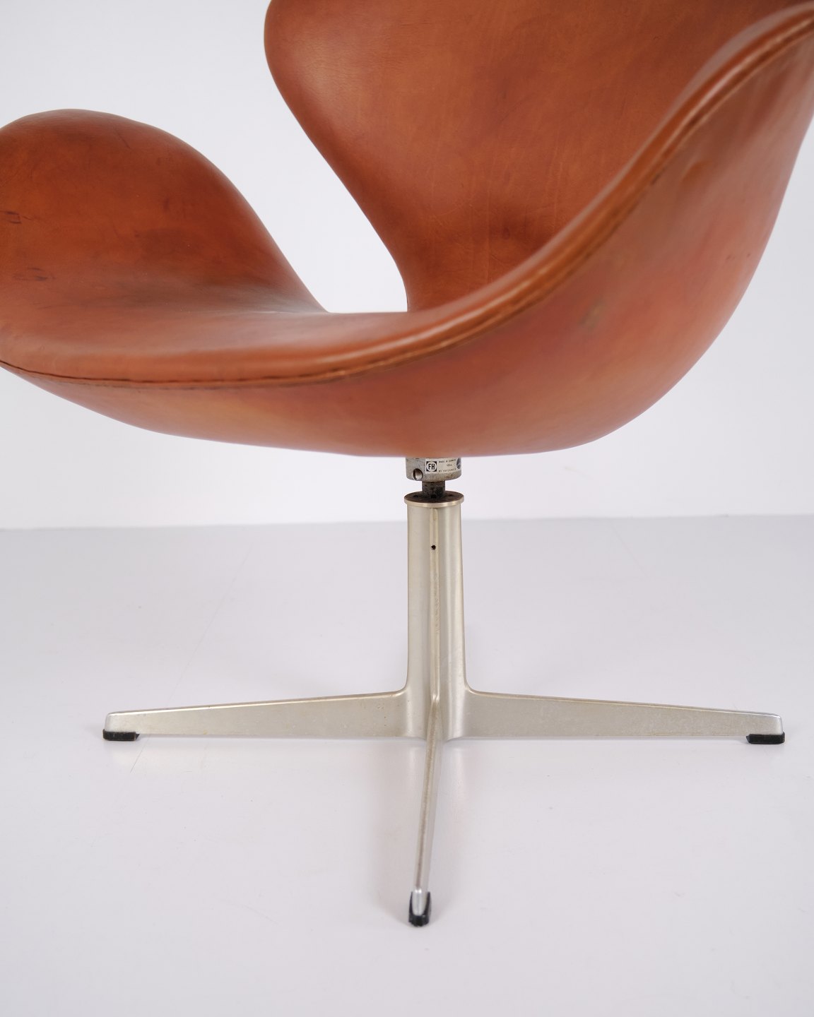 Der Schwan Modell 3320 von Arne Jacobsen für Fritz Hansen in originalem Cognacleder aus den 1960er Jahren. Ikonisches dänisches Design.