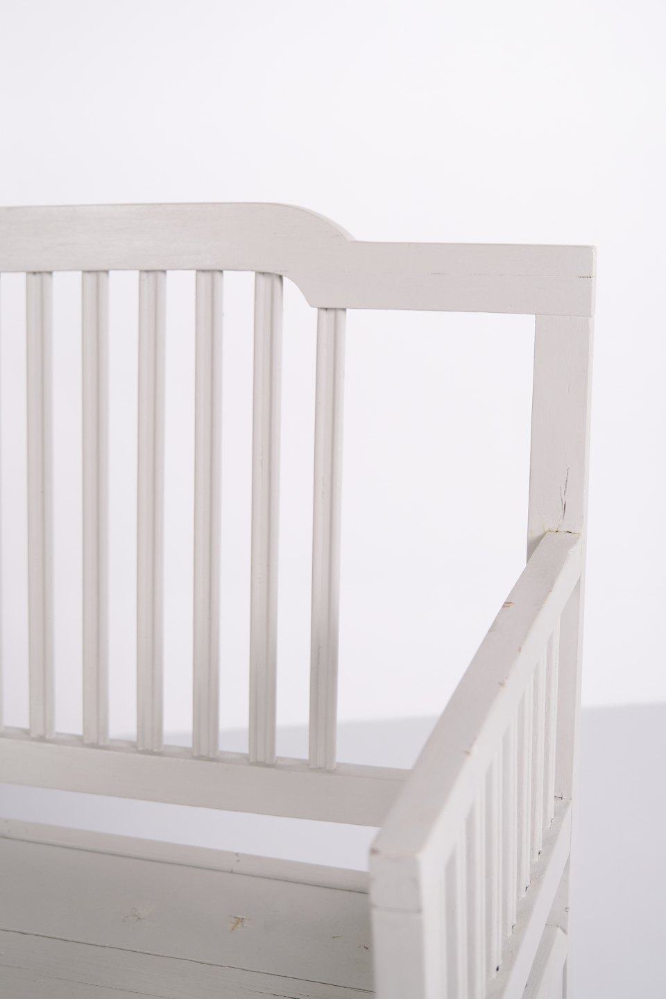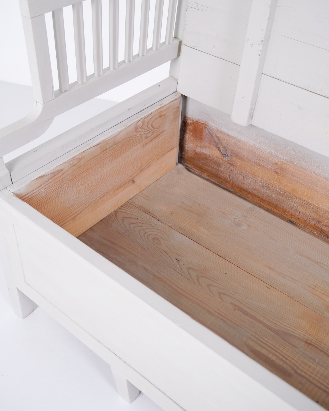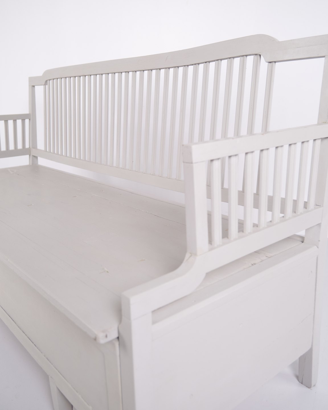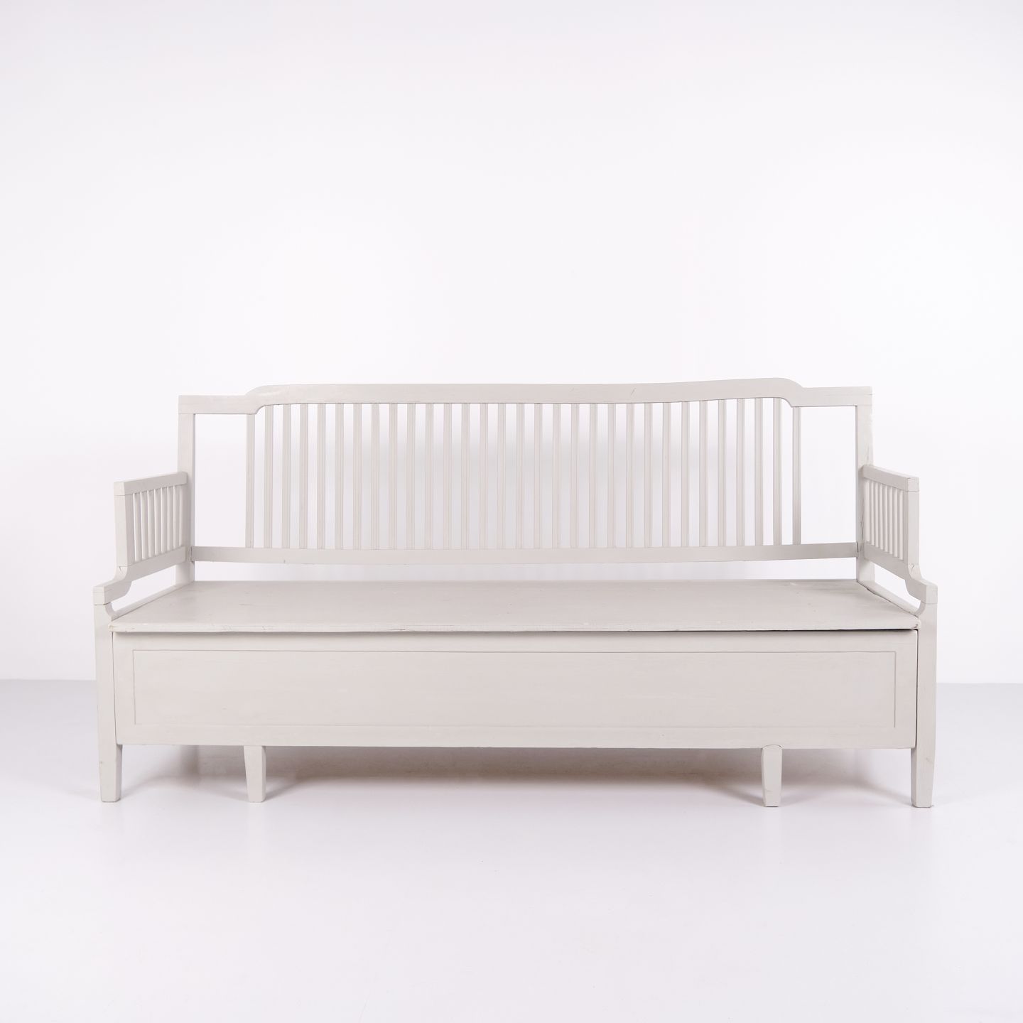 Antike Truhenbank Mit Hoher Rückenlehne – Grau Lackiert – Kiefernholz – 1860er Jahre