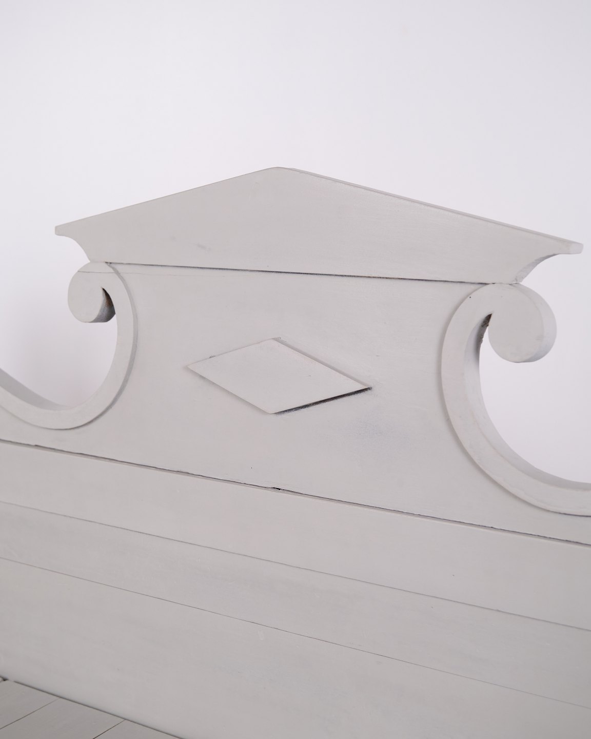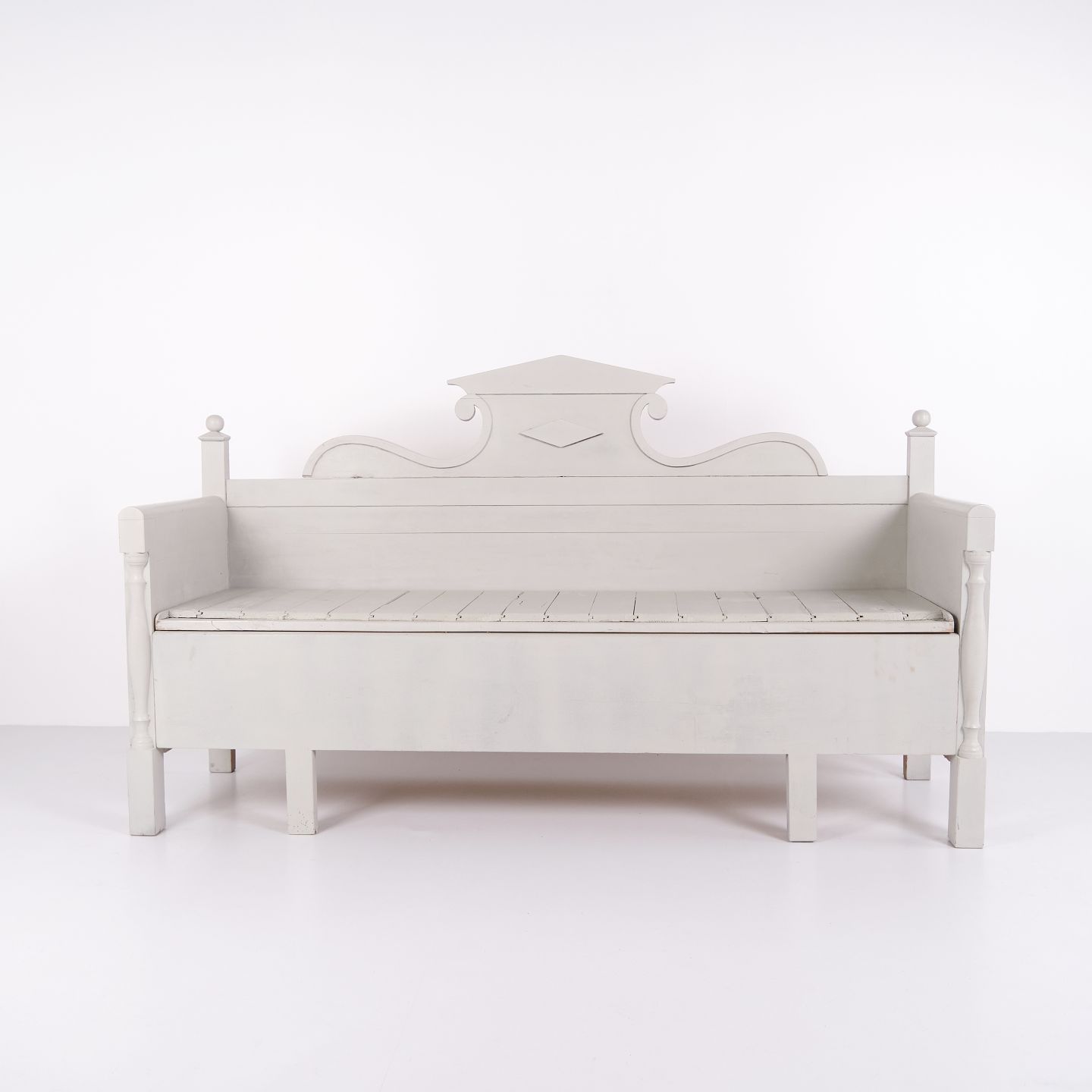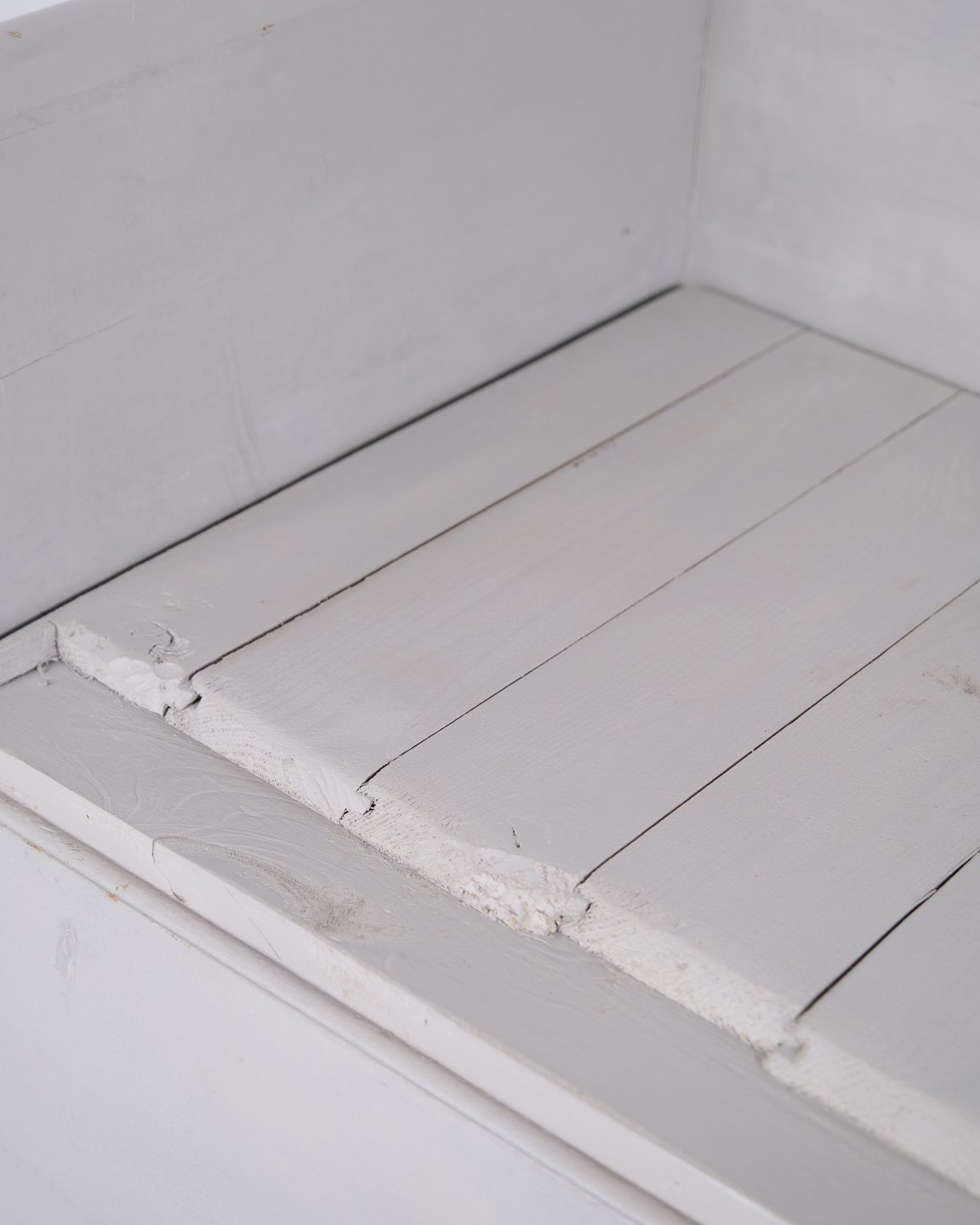 Antike Truhenbank Mit Schnitzereien – Grau Lackiert – Kiefernholz – 1860er Jahre