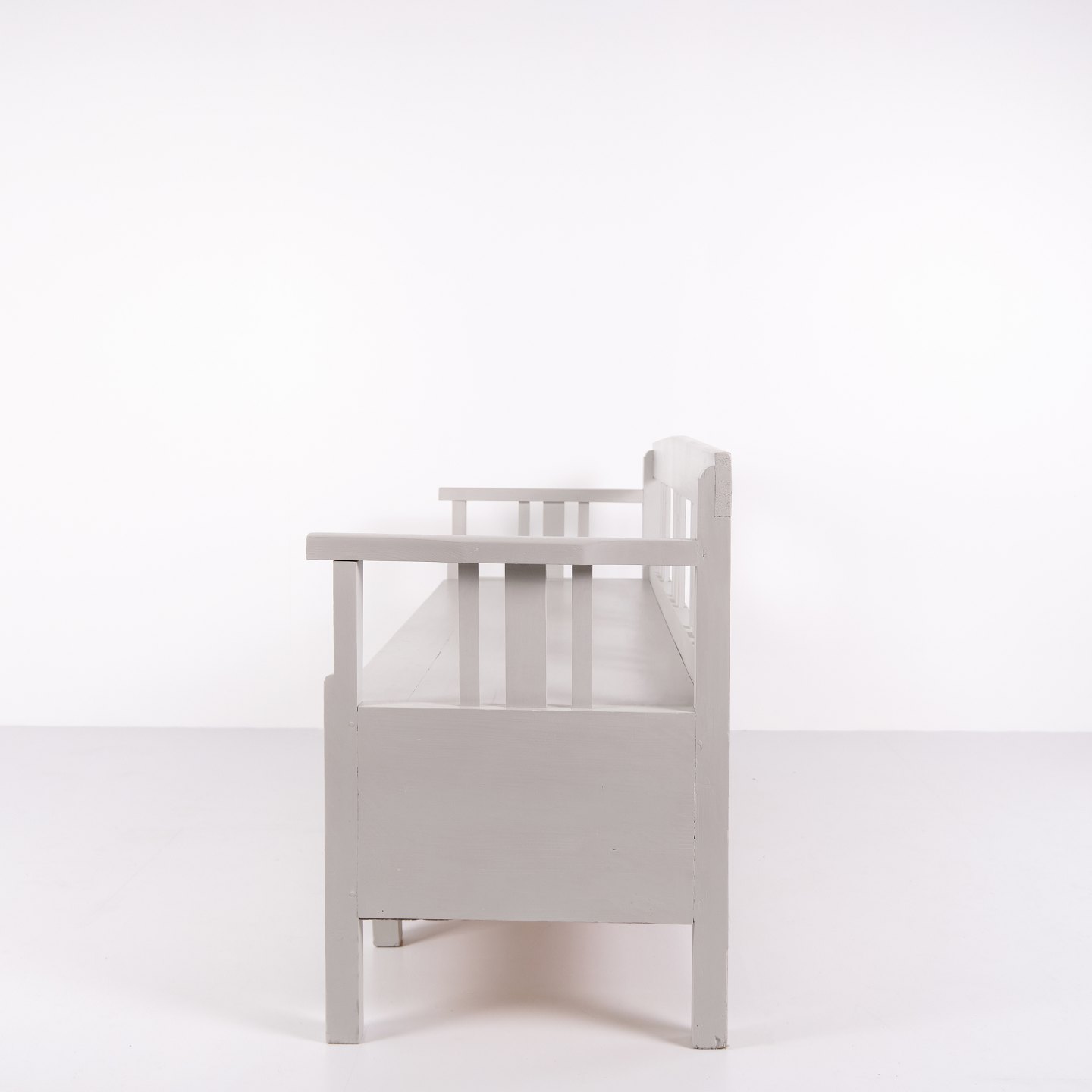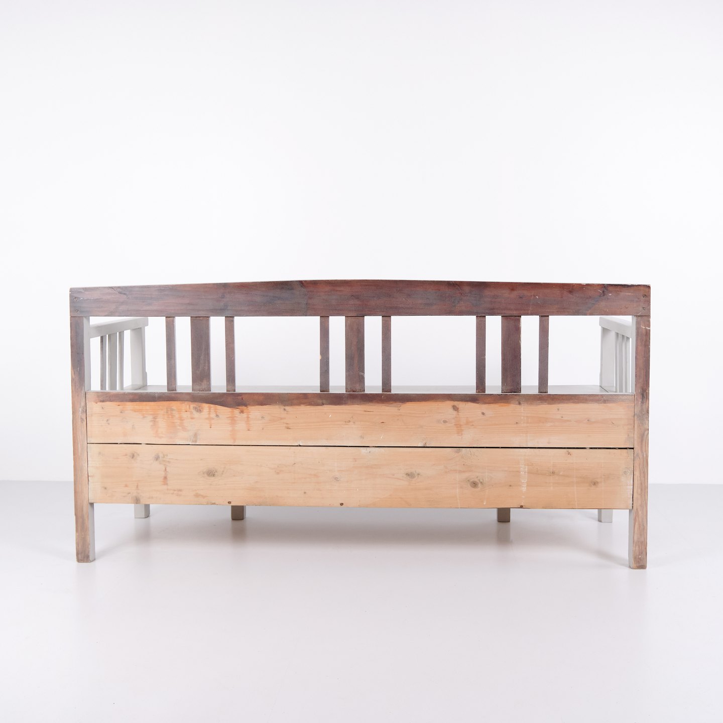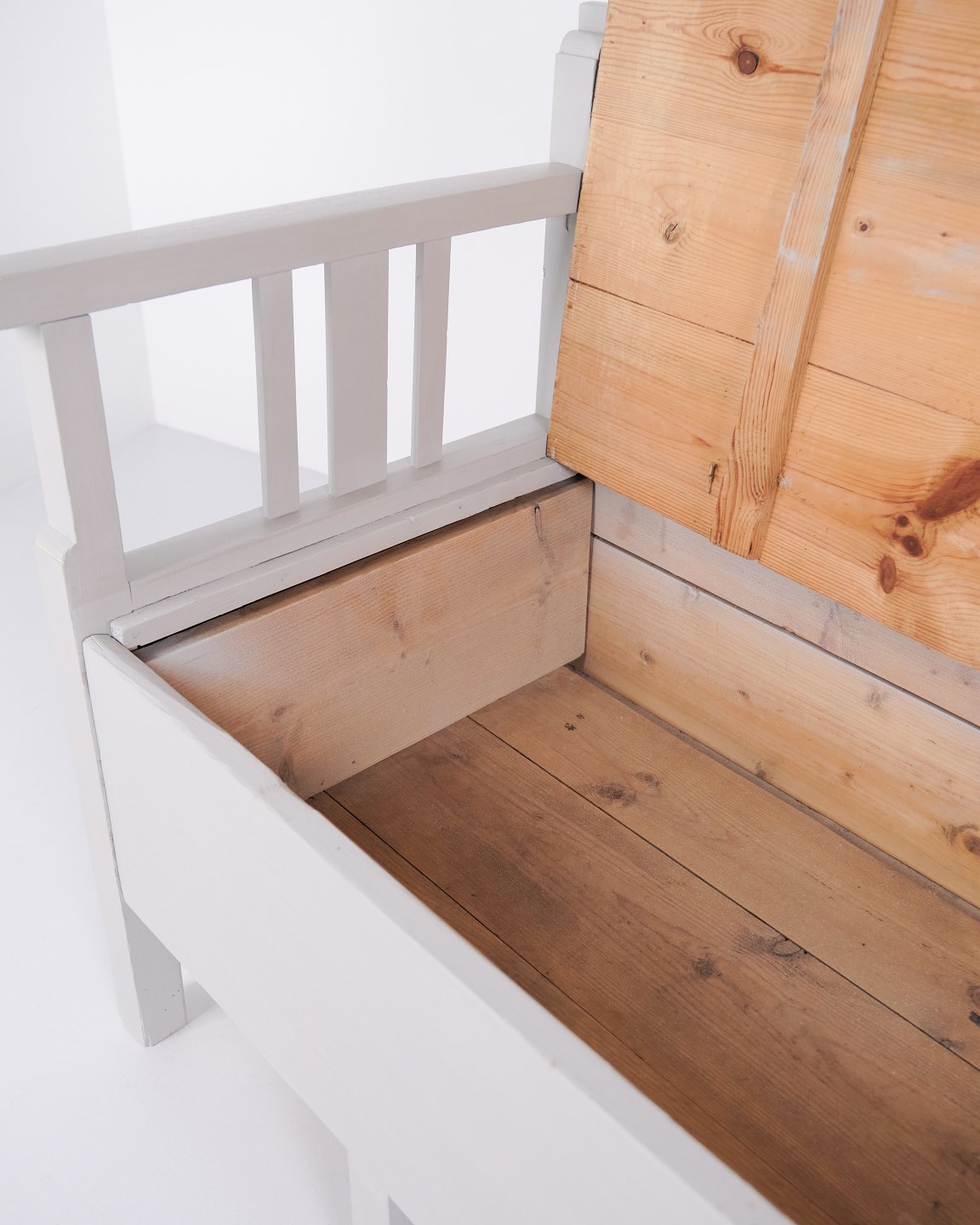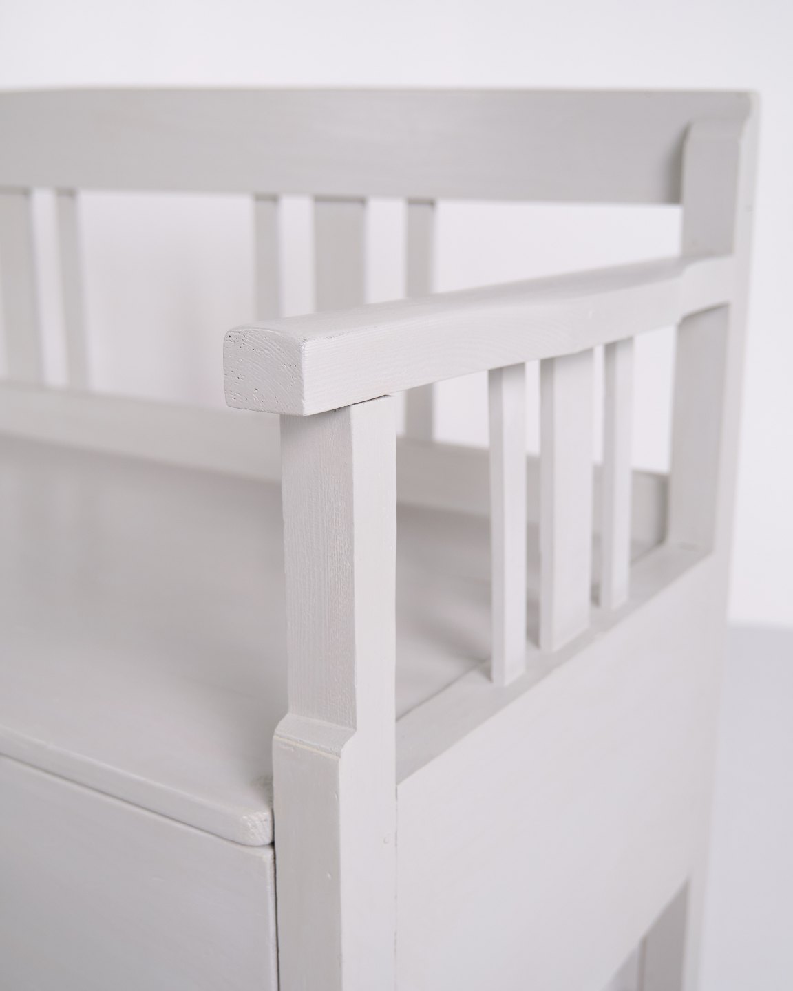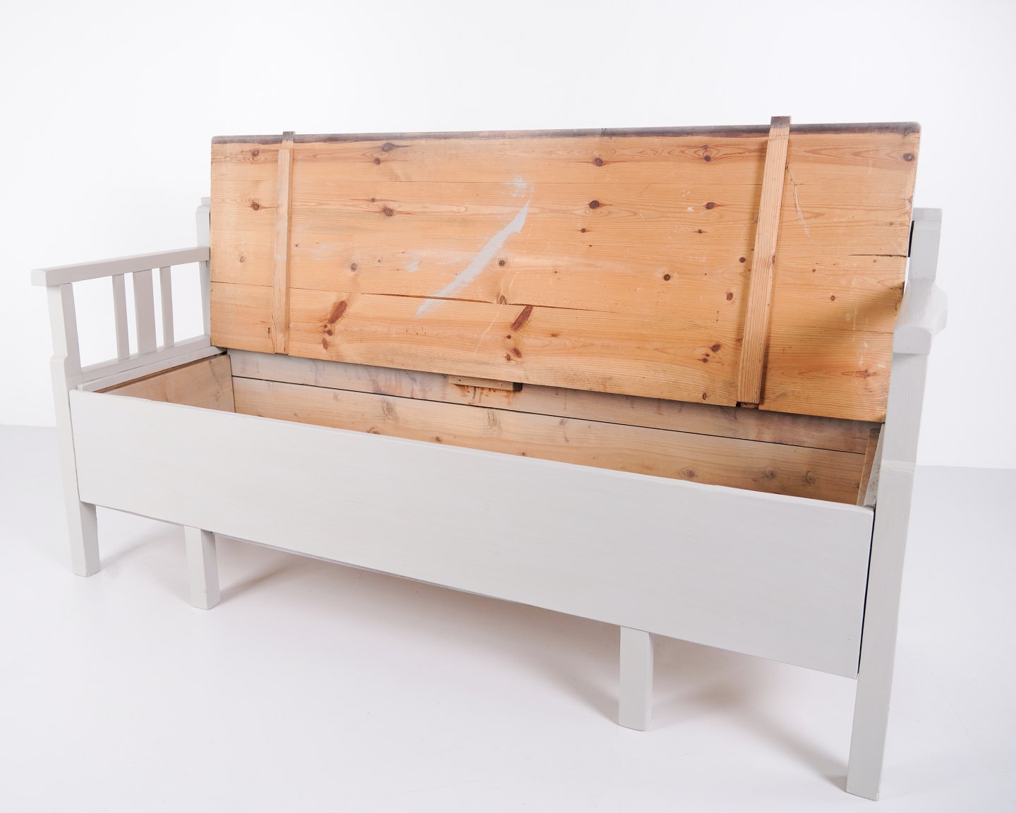 Antike Truhenbank – Grau Lackiert – Kiefernholz – 1860er Jahre