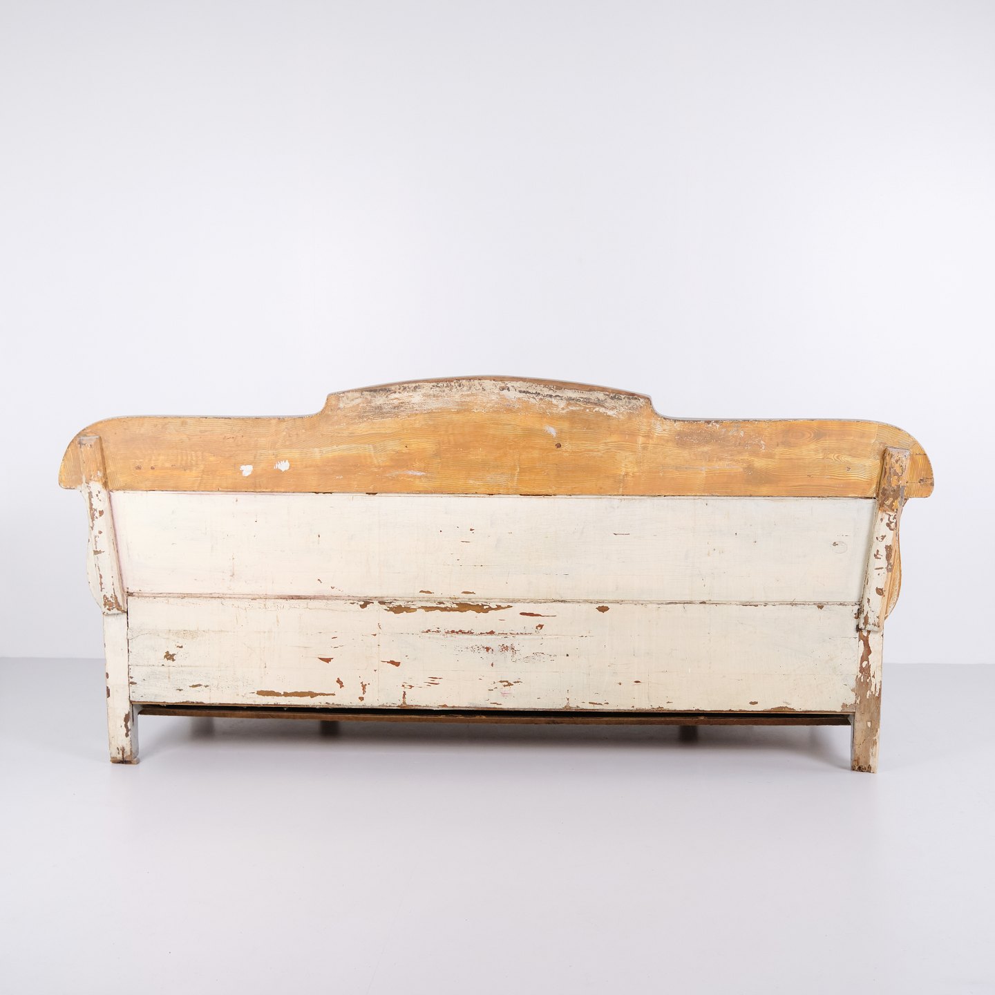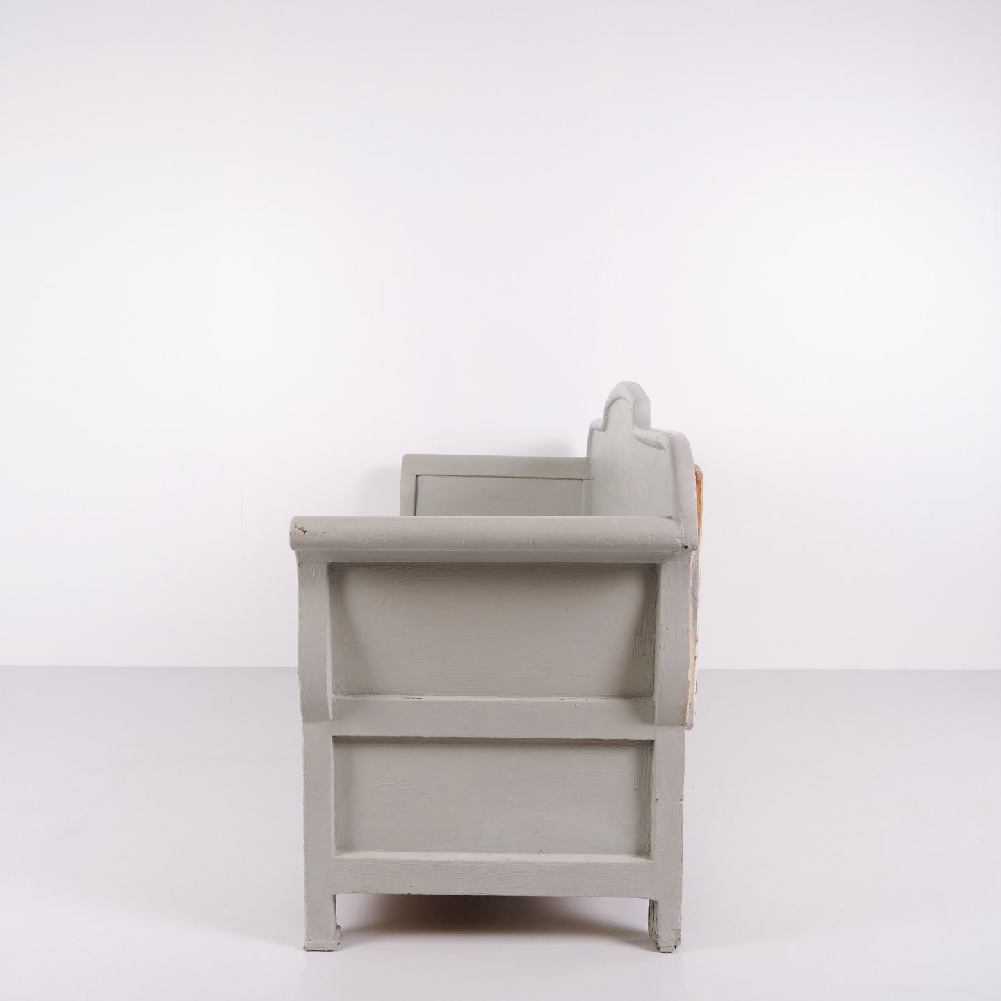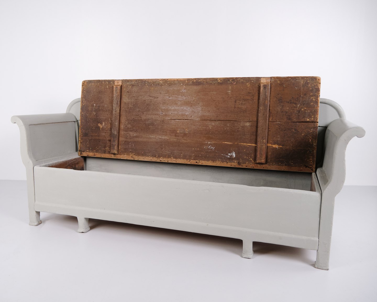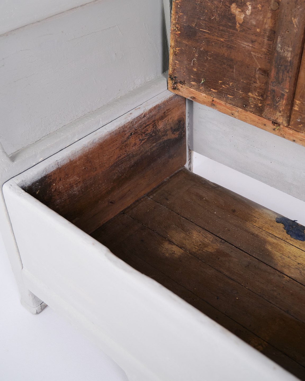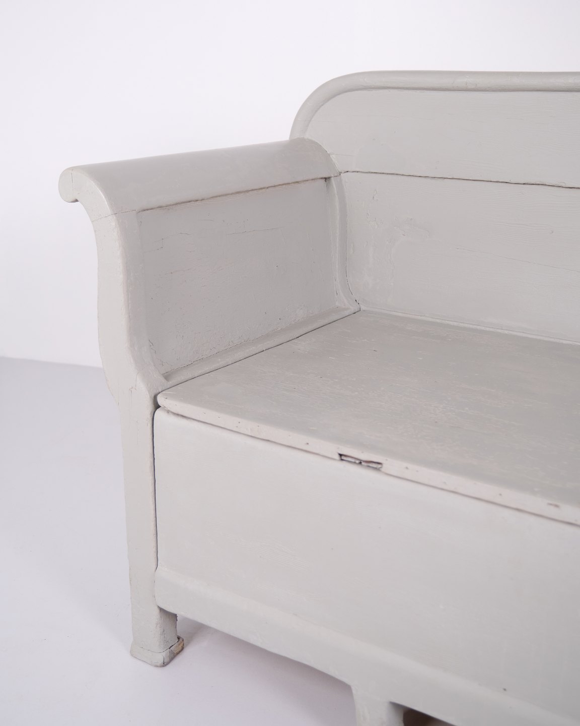 Antike Truhenbank – Grau Lackiert – Kiefernholz – 1890er Jahre