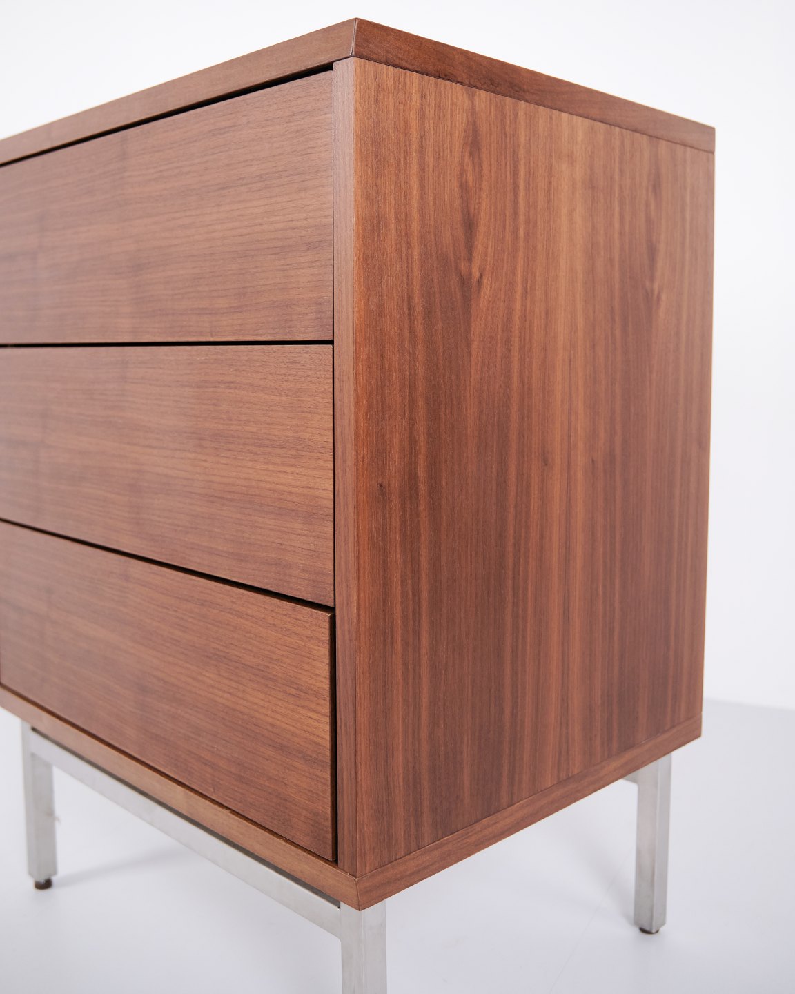Skovby Kommode in Walnuss mit 3 Schubladen und Metallbeinen. Modernes dänisches Möbel von Skovby Møbelfabrik.