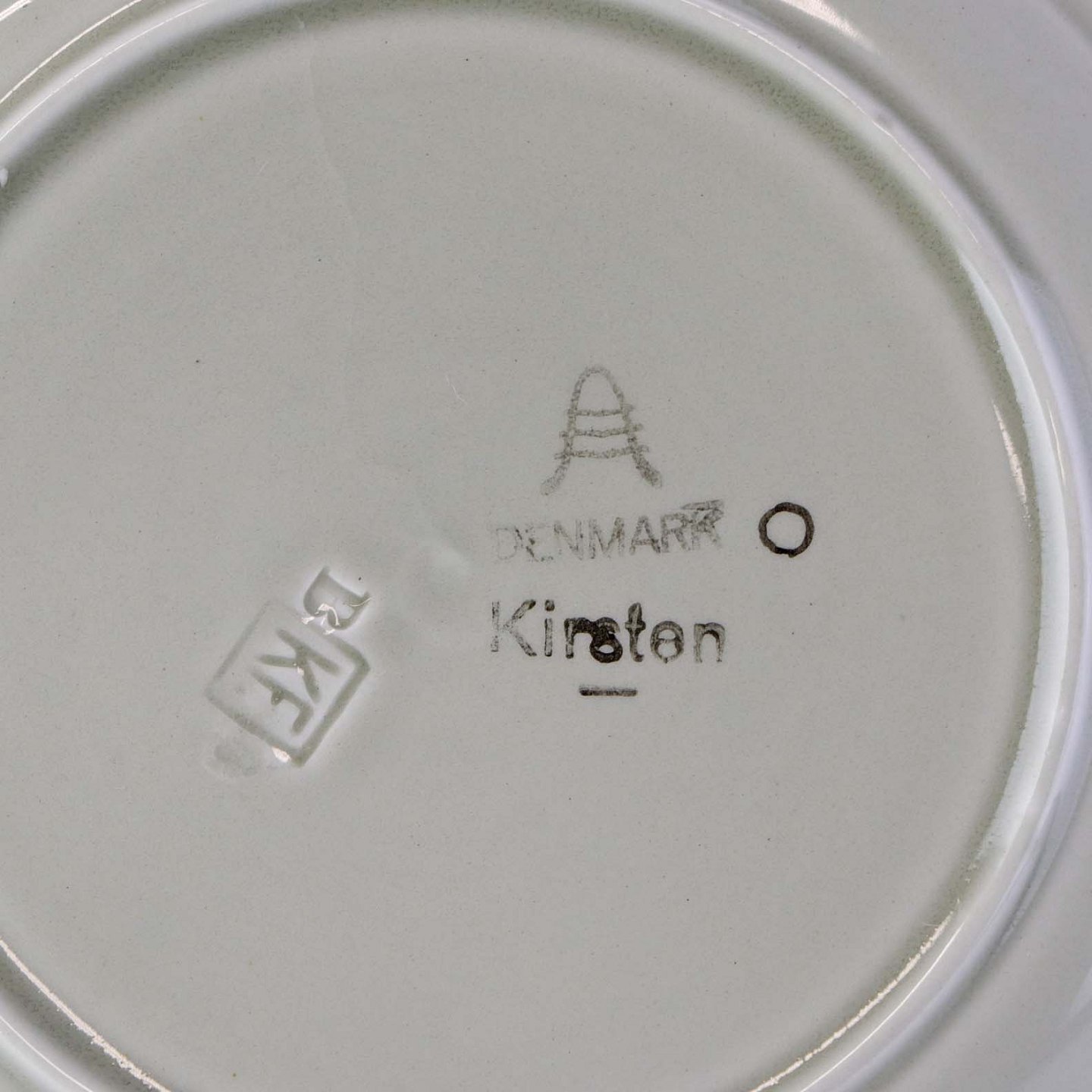 Desserttallerken i fajance fra stellet Kirsten, som blev fremstillet i perioden 1934-1957.