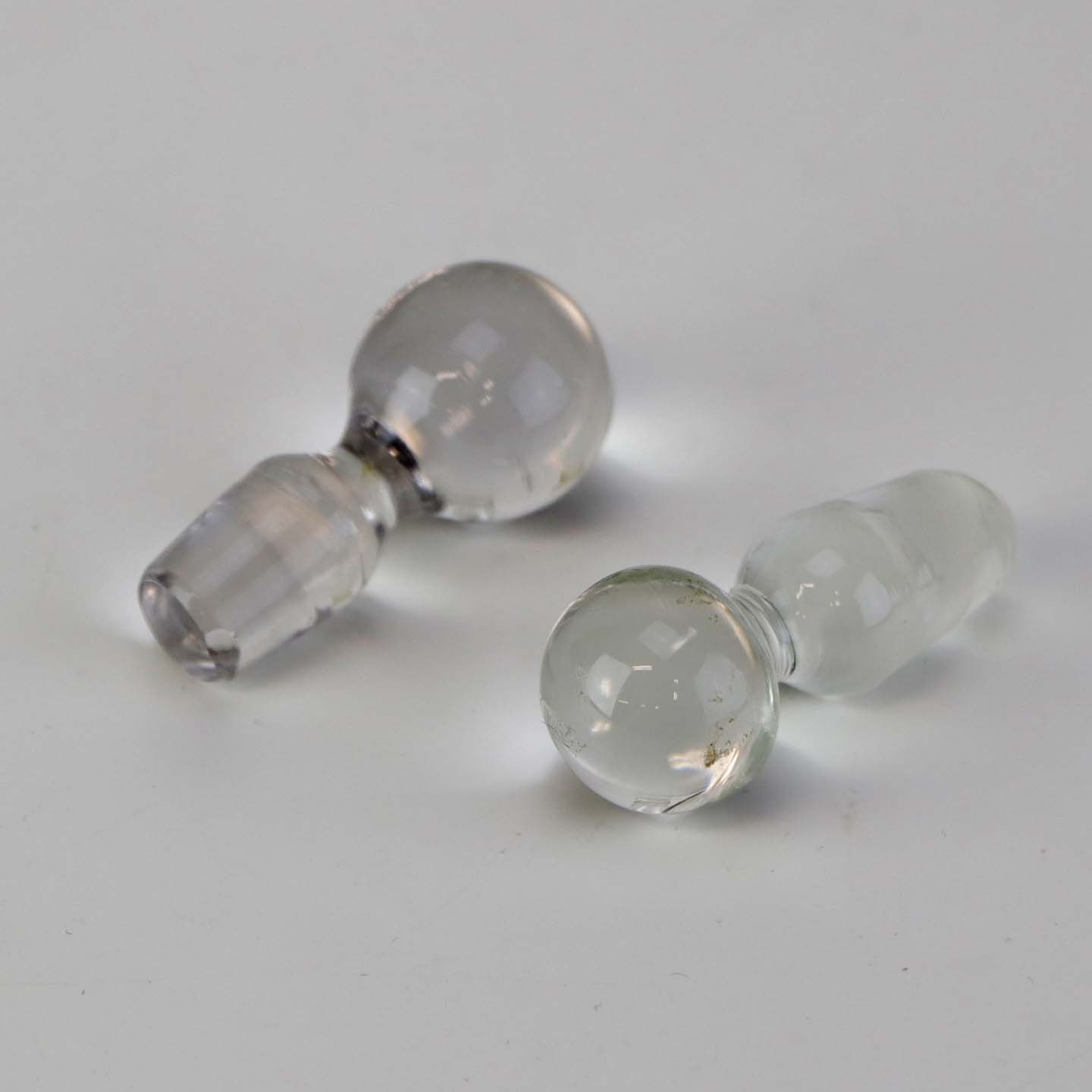 Fremstår med brugsspor glas ved den ene flaskehals.