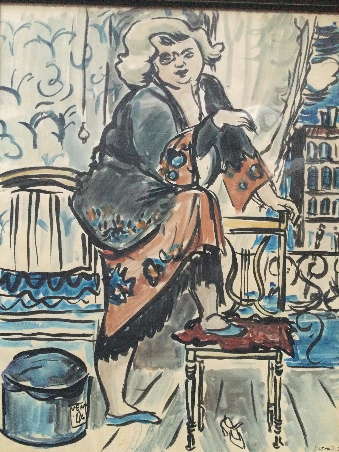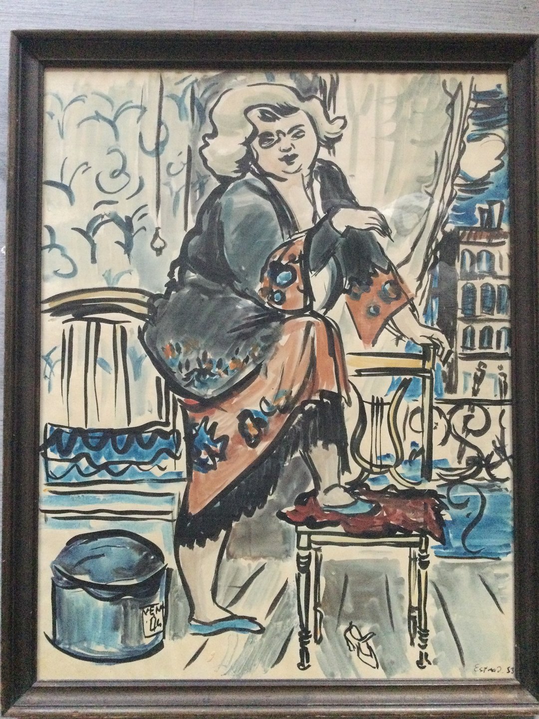 Akvarel af Leo Estvad 1933 - Frodig kvinde i interiør.