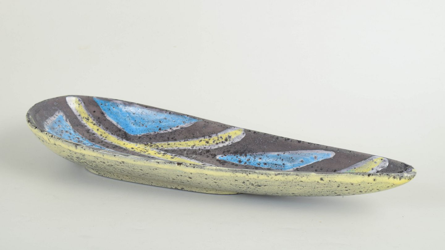 Text zugänglich auf Dänische: Guido Gambone for Bitossi, stor oval skål.