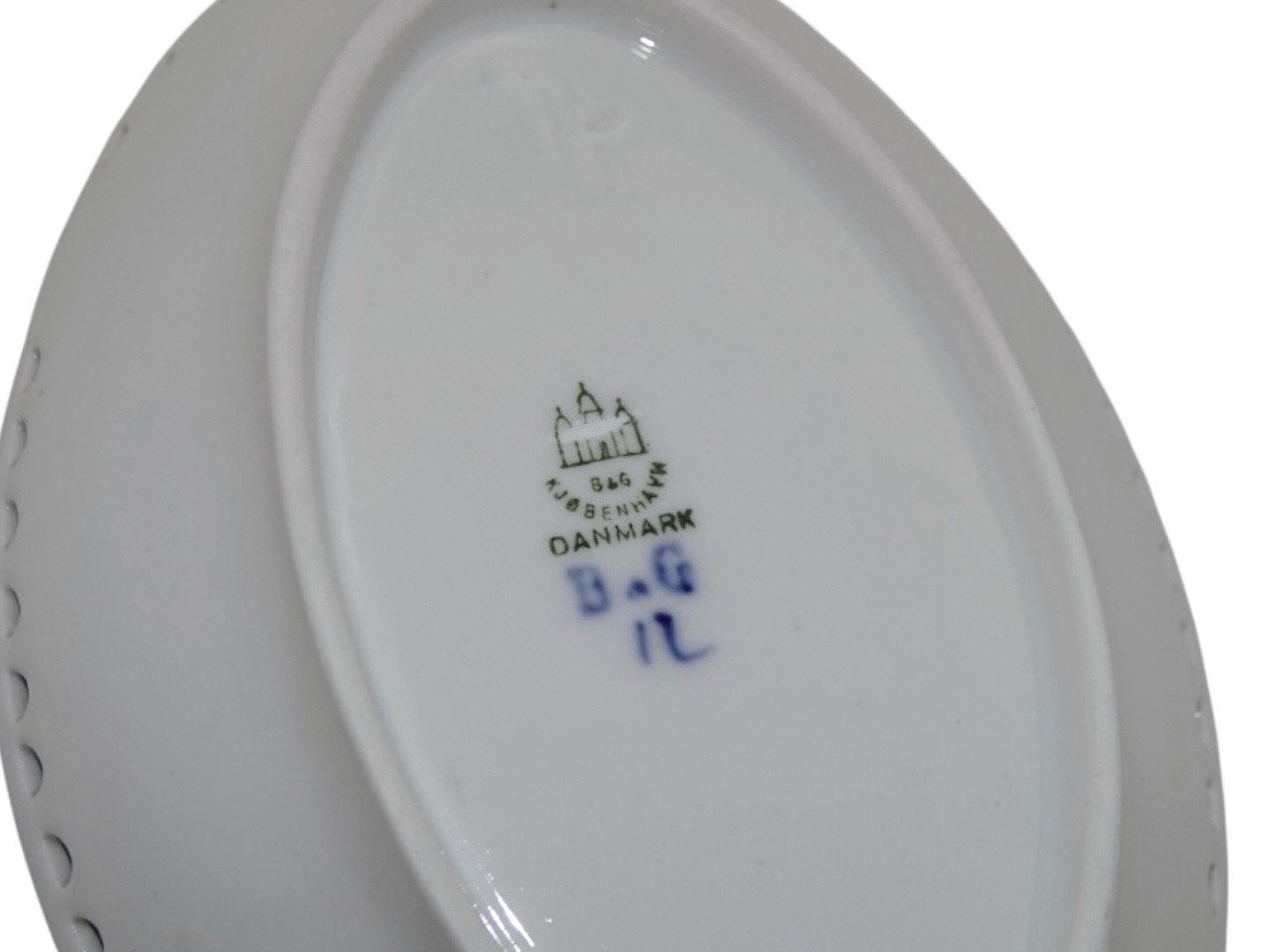 Bing & Grøndahl Blåmalet / Musselmalet, sjældent set mini fad med blondekant.