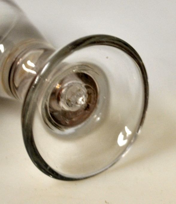 Freimaurerglas. Conradsminde, 1834–1857, Dänemark. Klares Glas mit gebogenem Fuß und hohlem Stiel. Durchmesser: 5,8 cm. Höhe: 12,3 cm.