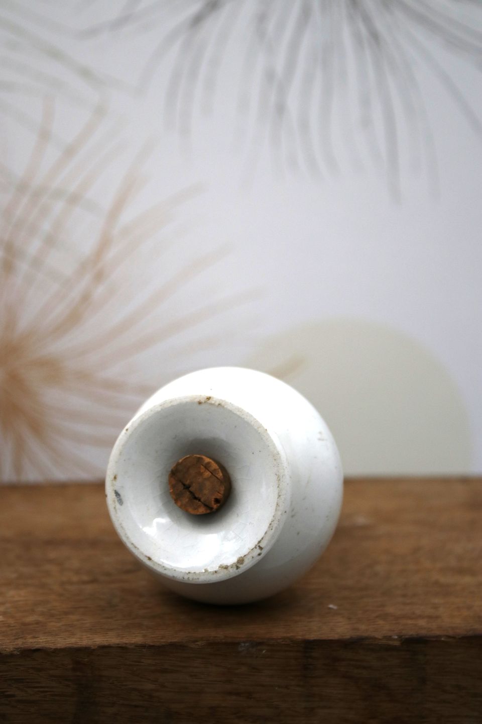 Gammel saltstrø i cremefarvet fajance med fin patina.