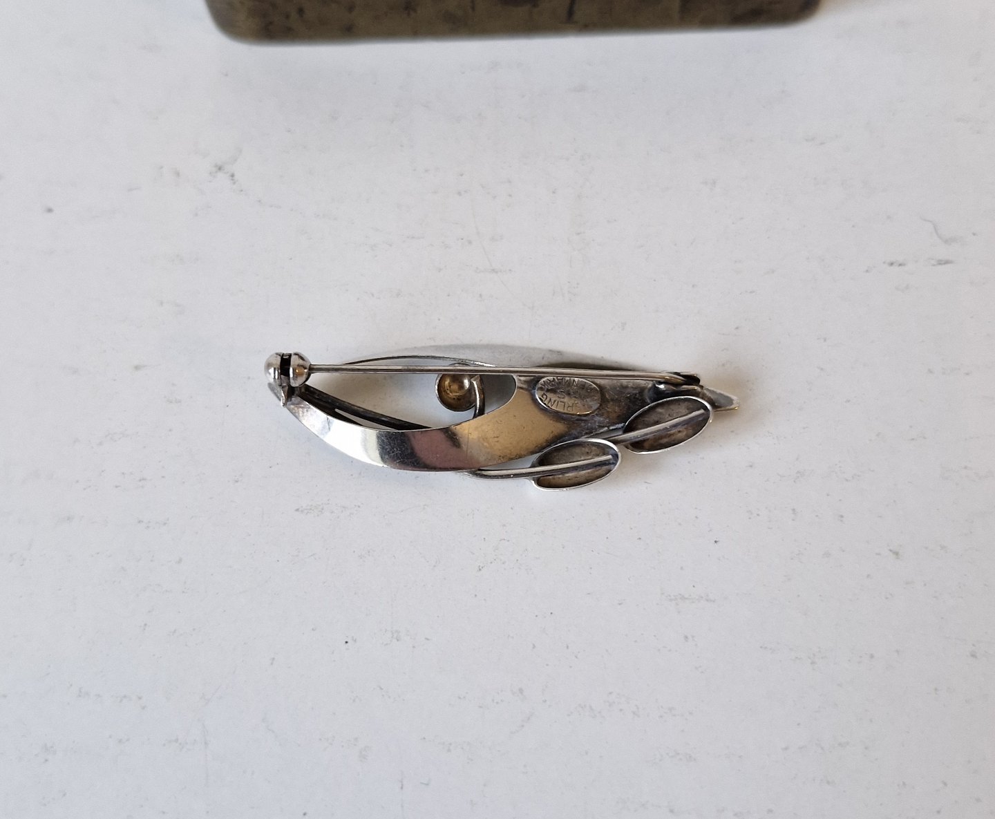 Text zugänglich auf Dänische: Vintage bladformet sølvbroche af Hermann Siersbøl