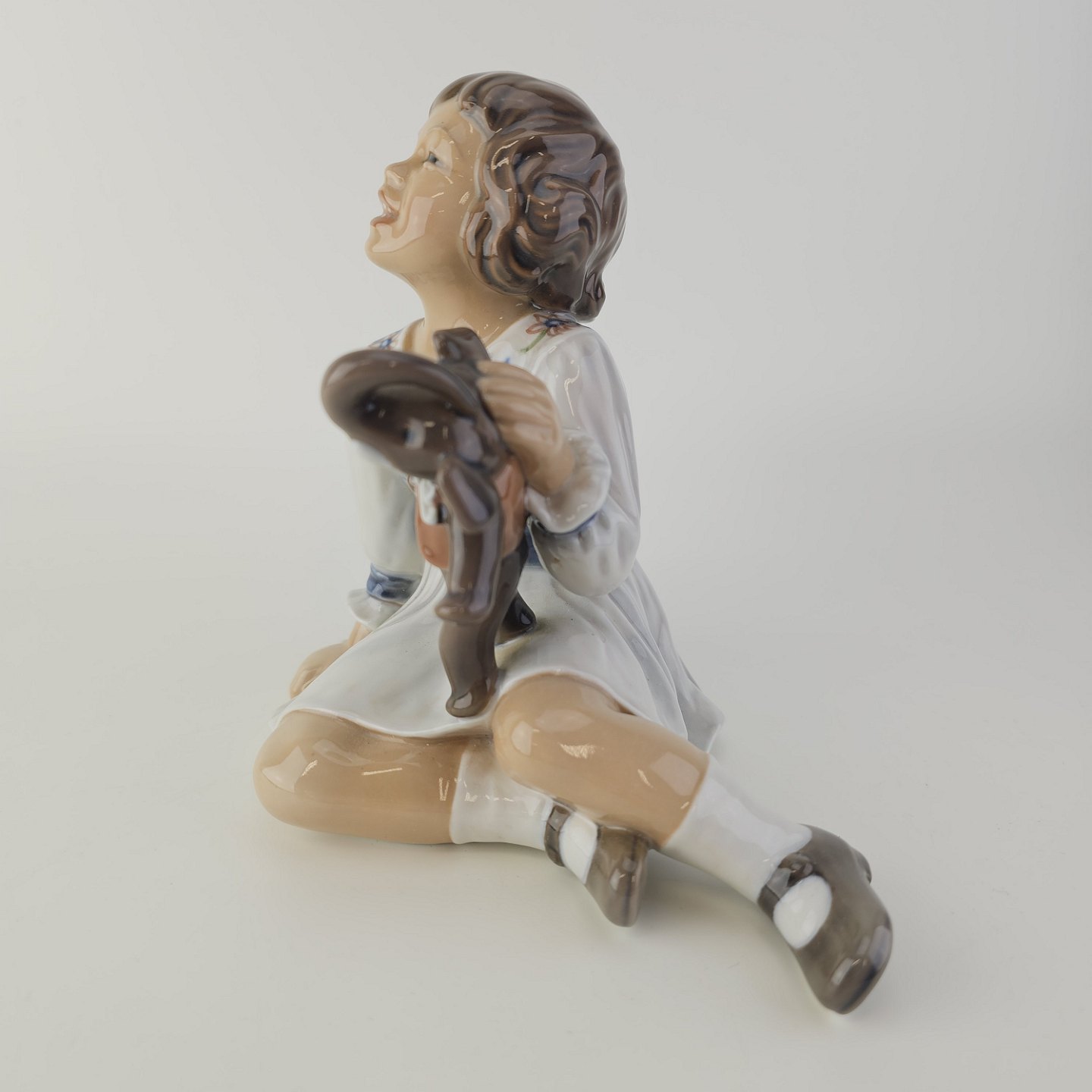 Figur i porcelæn med motiv af en pige med en legetøjselefant