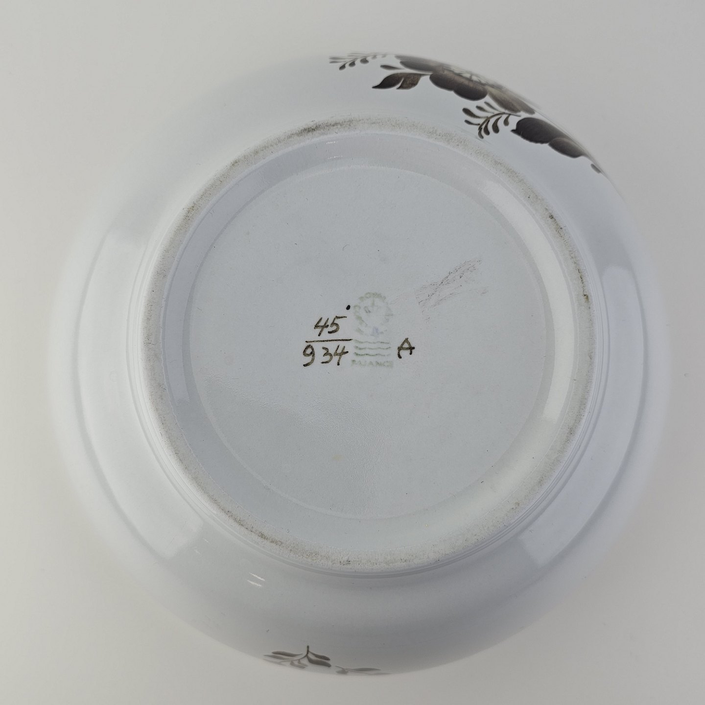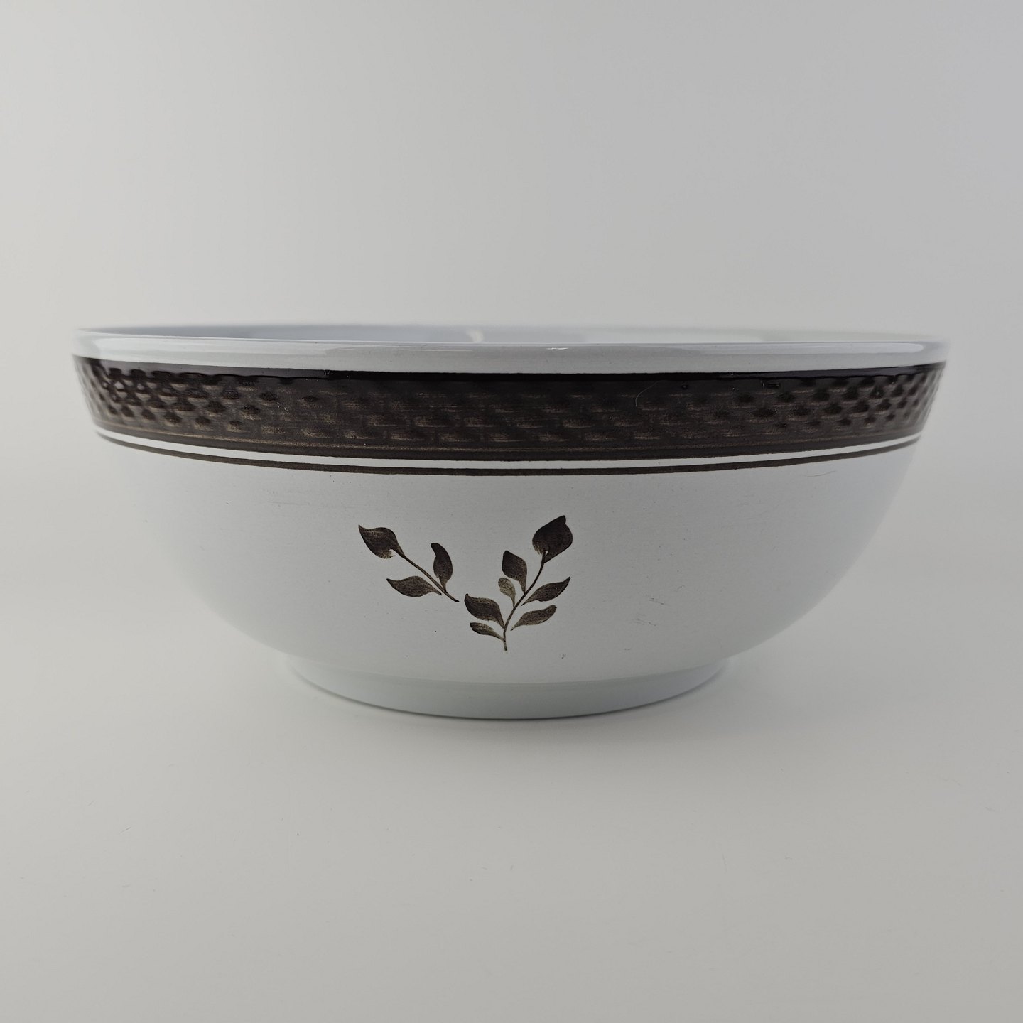 Fajancestellet med flettet kant og dekoration af brune blomster på lys baggrund med brun kant