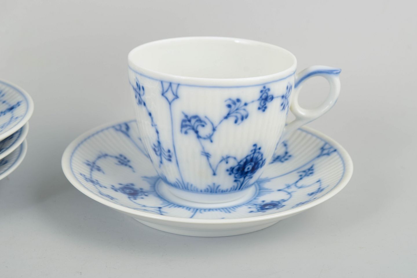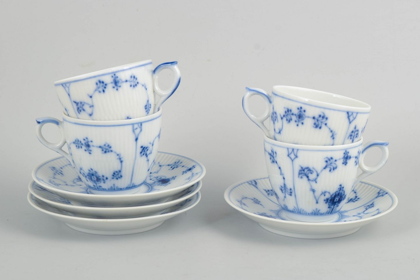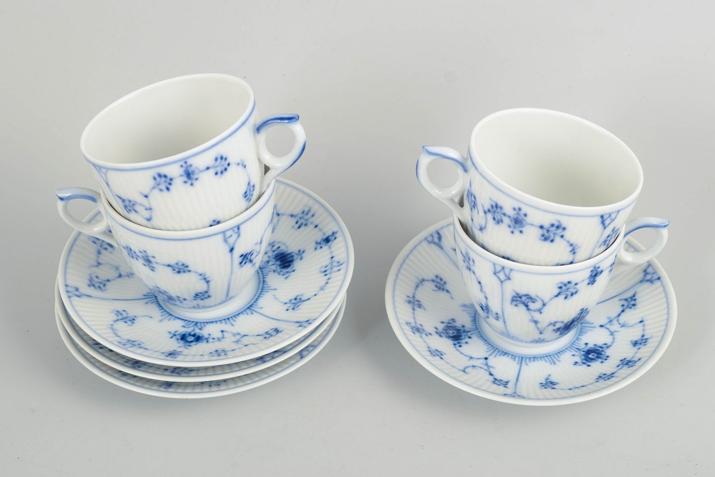 Royal Copenhagen, Musselmalet Riflet, kaffestel til 4 personer.