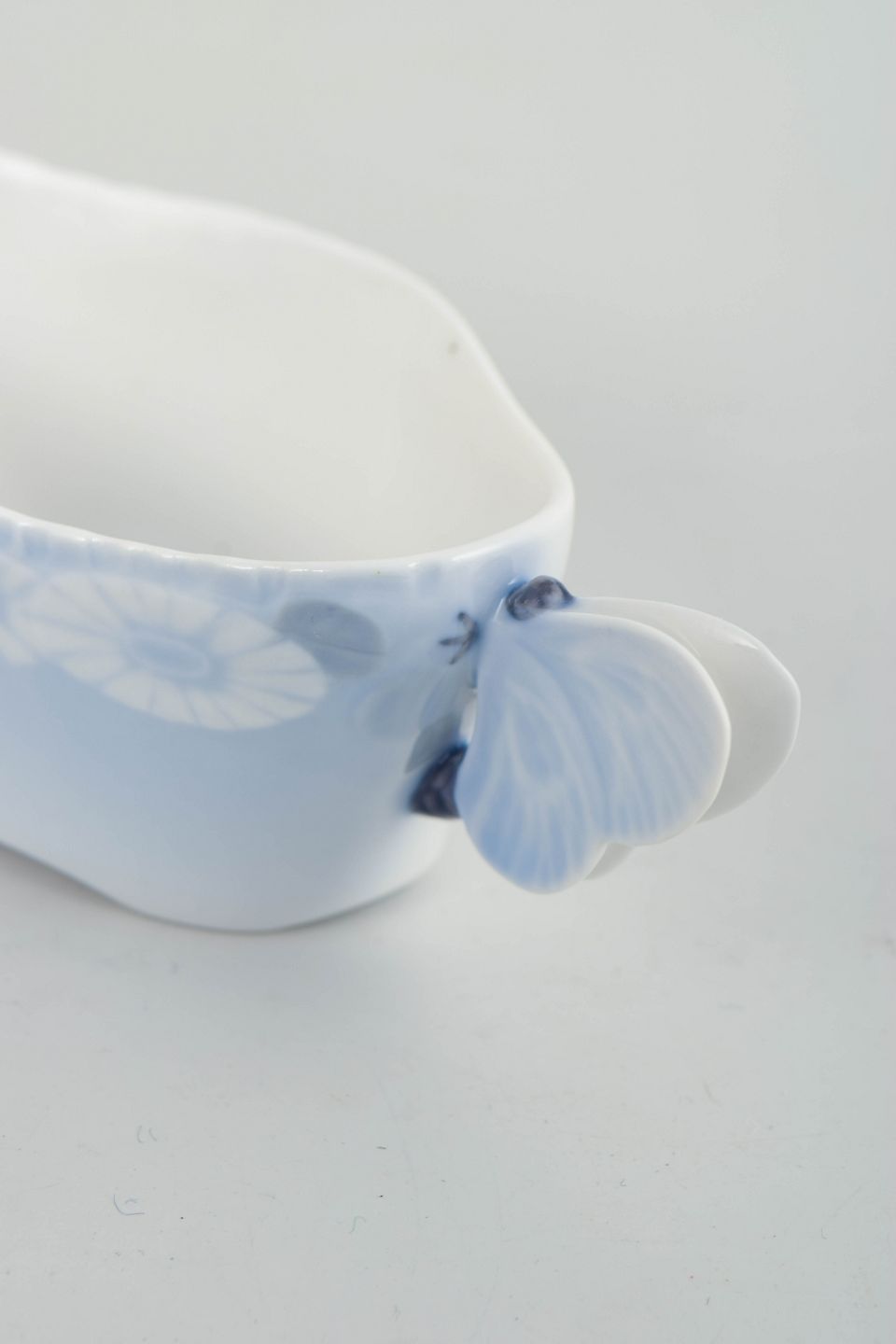 Flødekande i porcelæn fra serien Skærsommernatsdrøm, model 73/10040. Blødt svungen form med integreret hældetud og dekorativ hank.