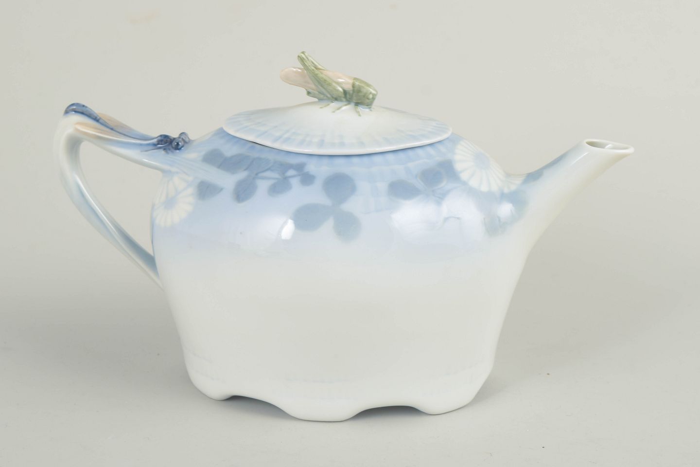 Elegant tekande i porcelæn fra serien Skærsommernatsdrøm, model 73/10036. Formen er blødt svungen med integreret tud og hank, og låget er forsynet med et naturalistisk knopgreb.