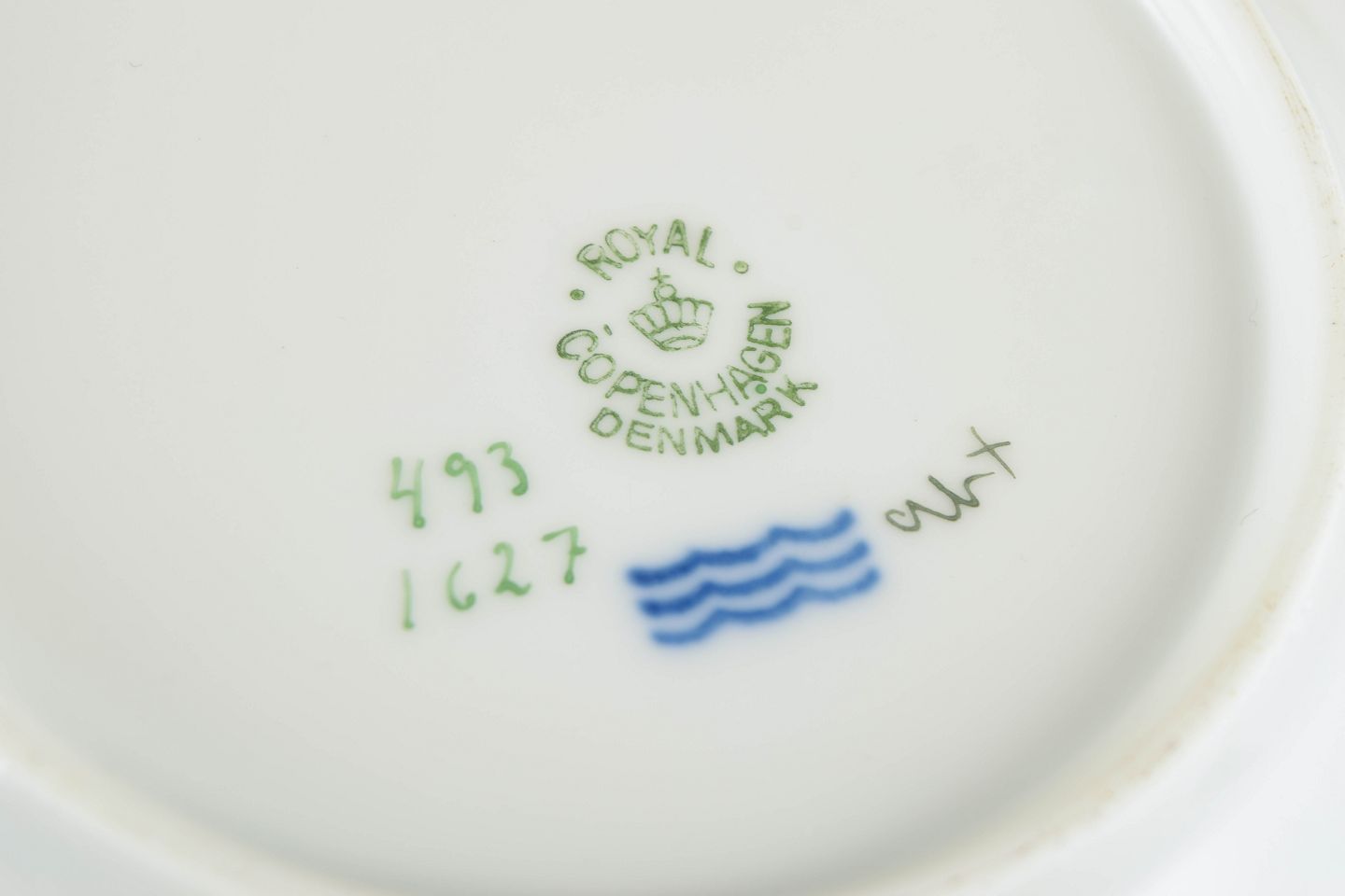 Text zugänglich auf Dänische: Royal Copenhagen, let Saksisk Blomst, sæt med 4 kagetallerkener.