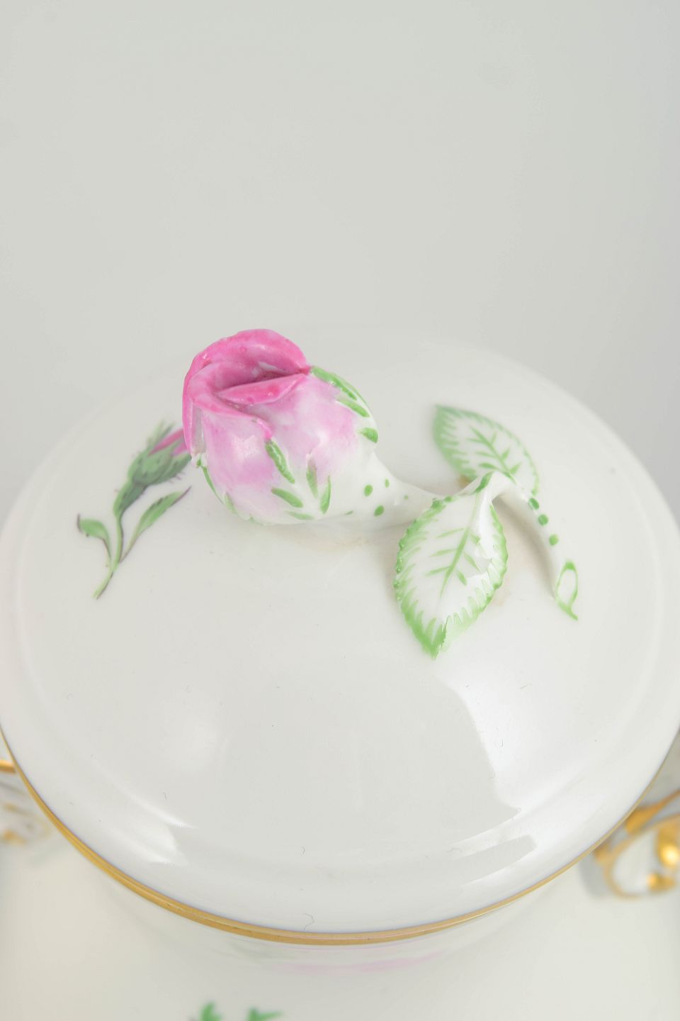 Text zugänglich auf Dänische: Meissen, lille kaffekande med låg og flødekande, serien Pink flower.