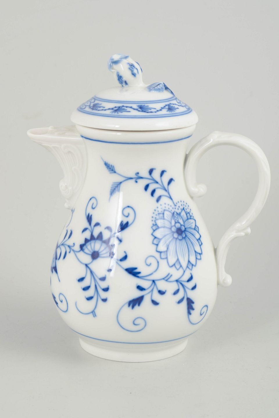 Text zugänglich auf Dänische: Meissen, løgmønstret, lille kaffekande med låg.