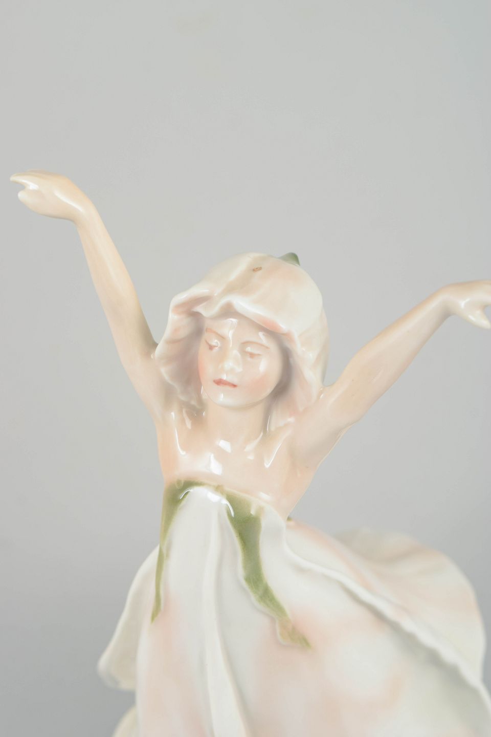 Porcelænsfigur forestillende Den Lille Idas Blomster, udført for H.C. Andersen Samlingen. Figuren er modelleret som en ung pige med løftede arme og svajende kjole i bløde hvide og rosa nuancer med diskrete grønne accenter. Undersiden er mærket Den Lille Idas Blomster, Nr. 1345/2500, hvilket angiver et begrænset oplag.