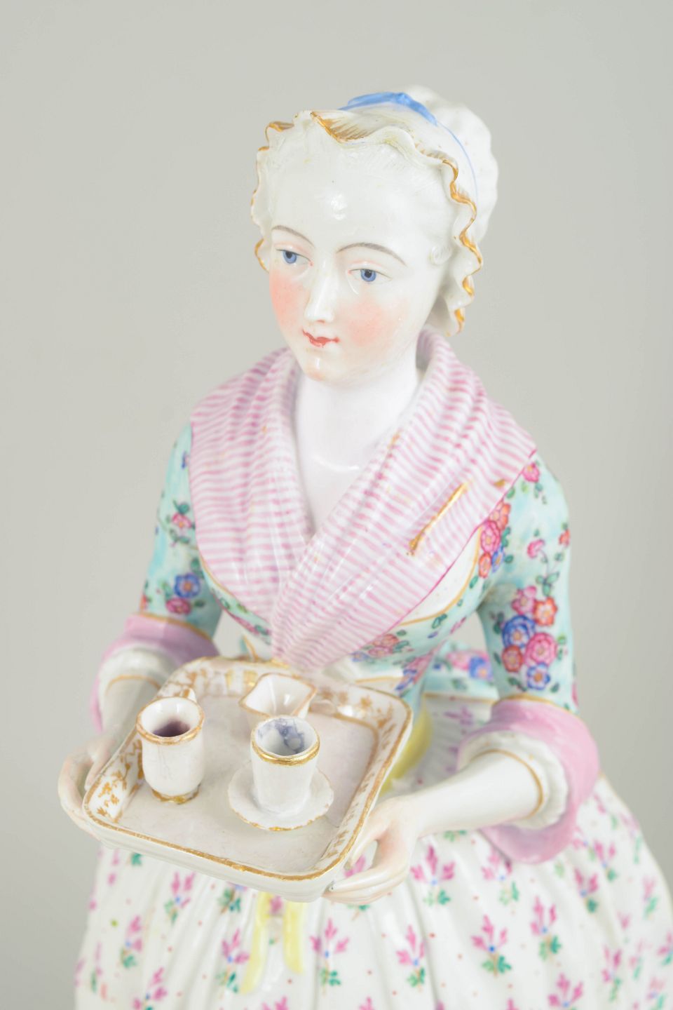 Meissen var Europas første hårdporcelænsfabrik (grundlagt 1710) og blev i 1700-tallet førende inden for skulpturelle porcelænsfigurer til hof og samlere. Perioden med Marcolini-mærket (sent 1700-tal til tidligt 1800-tal) er kendt for teknisk høj kvalitet, raffineret modellering og udsøgt håndmalet staffering. Motivet “La Belle Chocolatière” blev et ikon for rokokoens og oplysningstidens fascination af hverdagslige, elegante scener, og Meissens fortolkninger regnes blandt fabrikkens mest prestigefyldte figurmodeller.