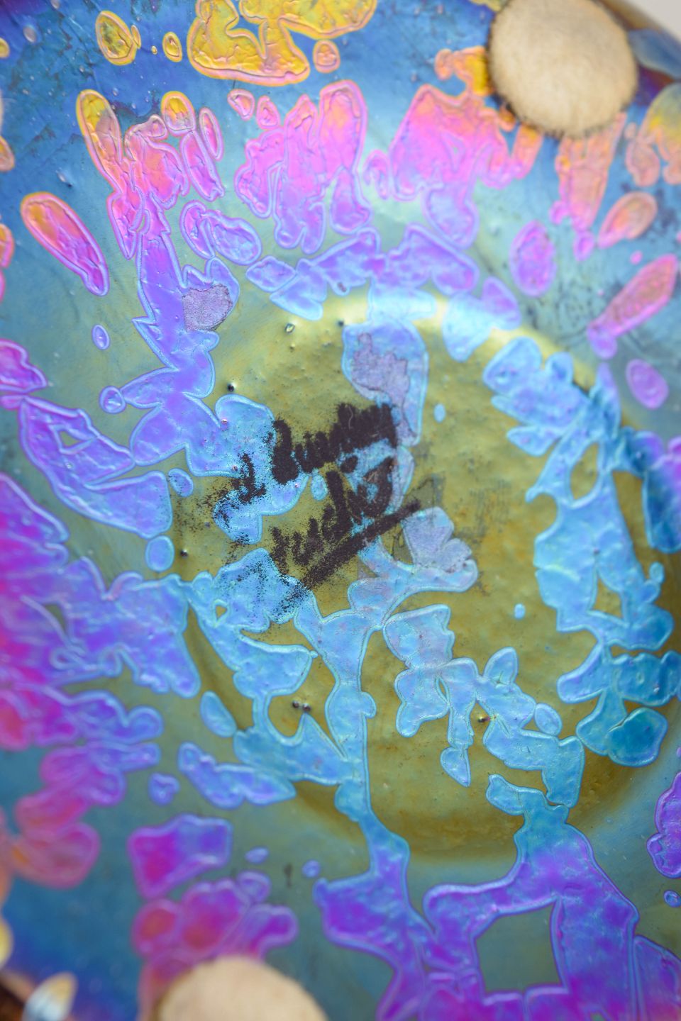 Materiale: Iriserende kunstglas, metal, gummi.
