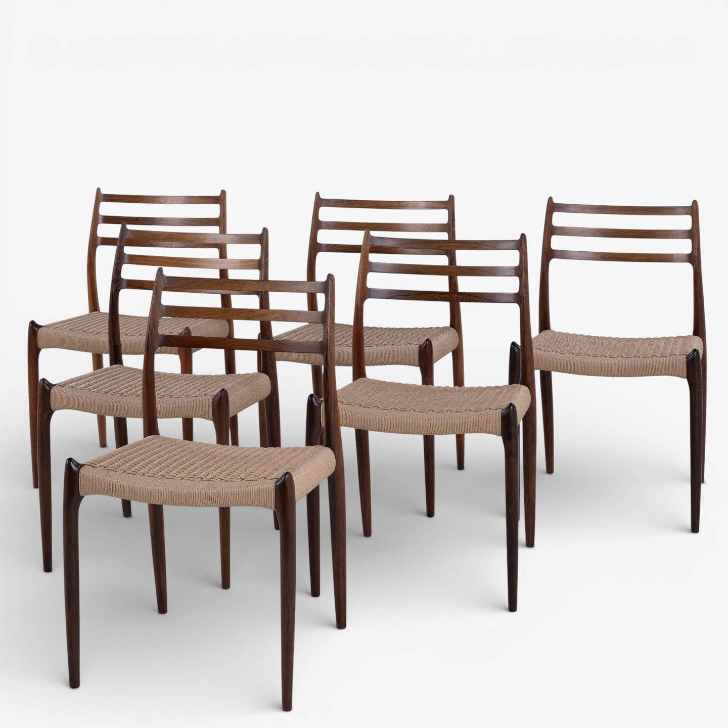 NO 78 - Sæt á 6 spisestole i palisander med sæde i papirgarn. Mærket fra producent.