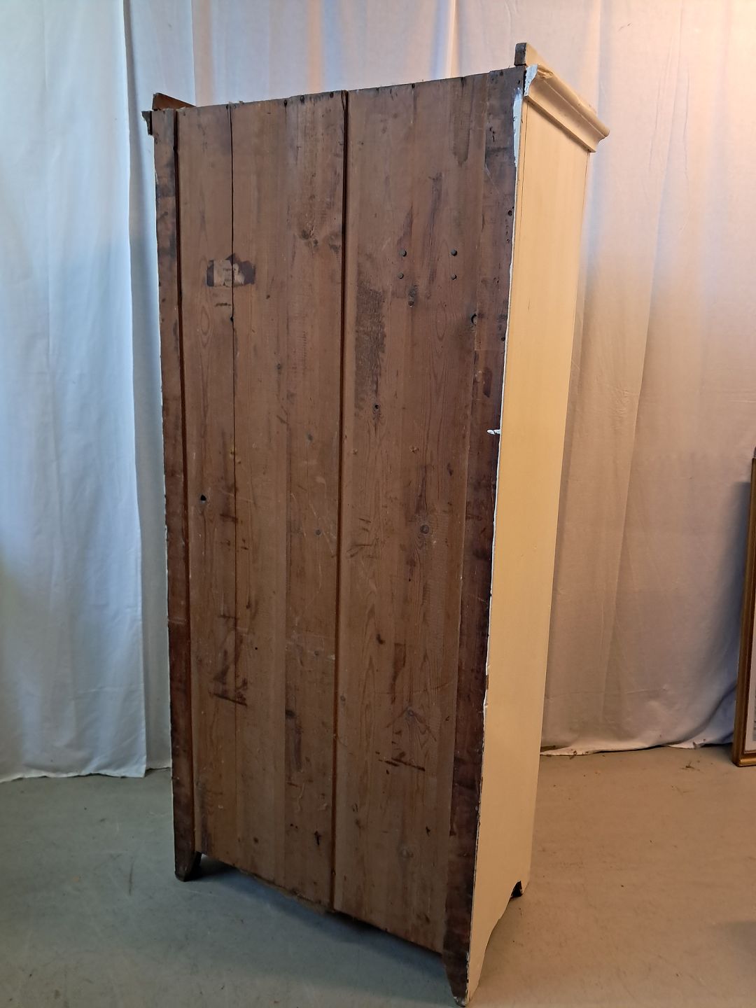 malet karlekammerskab i massivt fyrretræ, fra 1930erne.