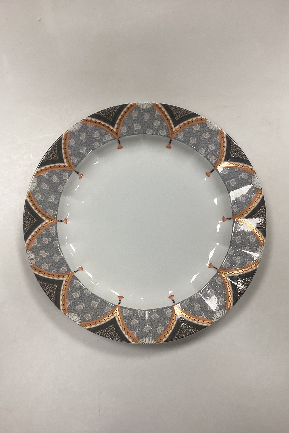 Royal Copenhagen Fairytale Grå, Stort Rundt Fad No. 376. Måler 33 cm / 13 in.