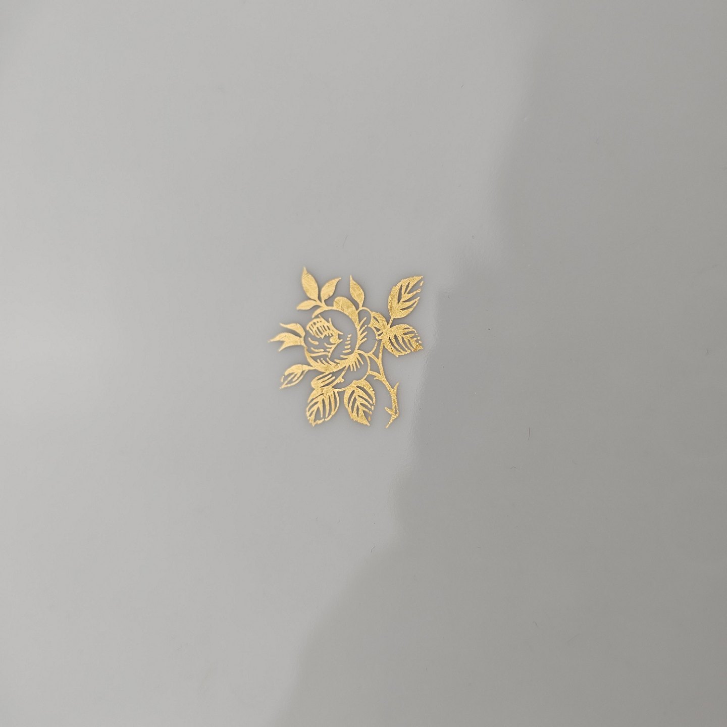 Thorvaldsen er stel i glat hvidt porcelæn med lysegrøn bort, forgyldt dekoration og guldkant