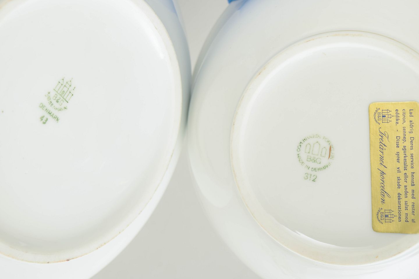 Bing & Grøndahl var en af Danmarks førende porcelænsfabrikker og kendt for sin høje tekniske kvalitet og sikre formsans. I 1920’erne og 30’erne arbejdede fabrikken i et formsprog præget af Art Deco, hvor stramme linjer, geometriske mønstre og diskret forgyldning gav et moderne og elegant udtryk, velegnet til både hverdagsbrug og repræsentative serveringer.