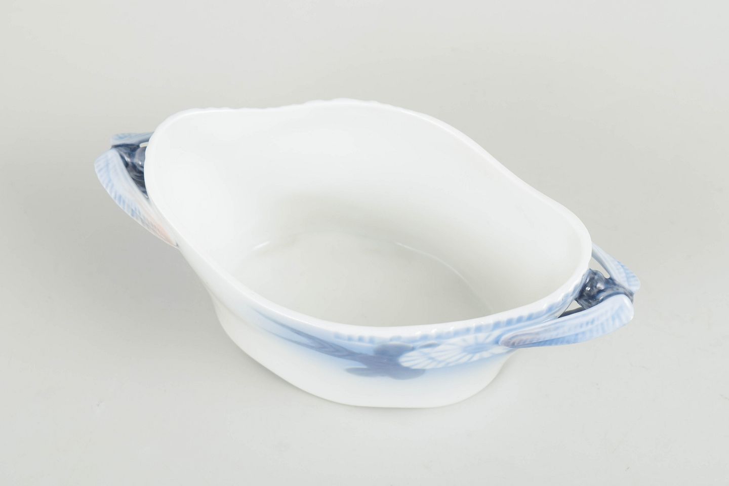Lille åben porcelænsskål med to hanke og blå underglasurdekoration i serien Skærsommernatsdrøm.