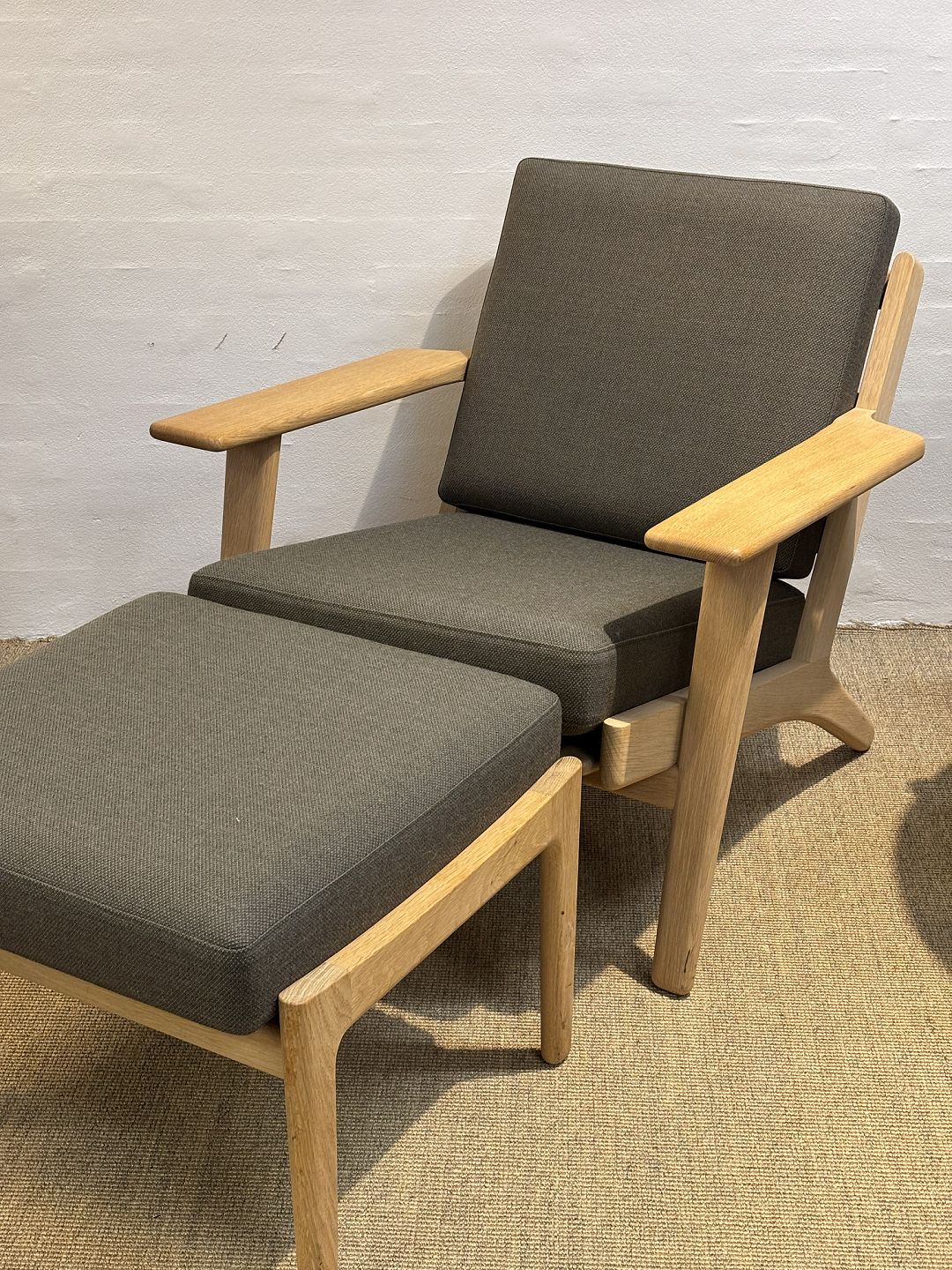 Wegner model 290 lav lænestol og skammel. Lys eg. Fin stand. Mærket Getama. I alt 20000,-