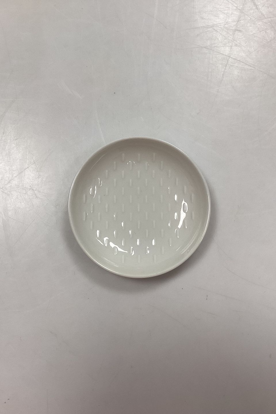 Royal Copenhagen Blanc de Chine Skål No. 4153. Reliefmønster med streger. Måler 10,5 cm / 4,13 in.