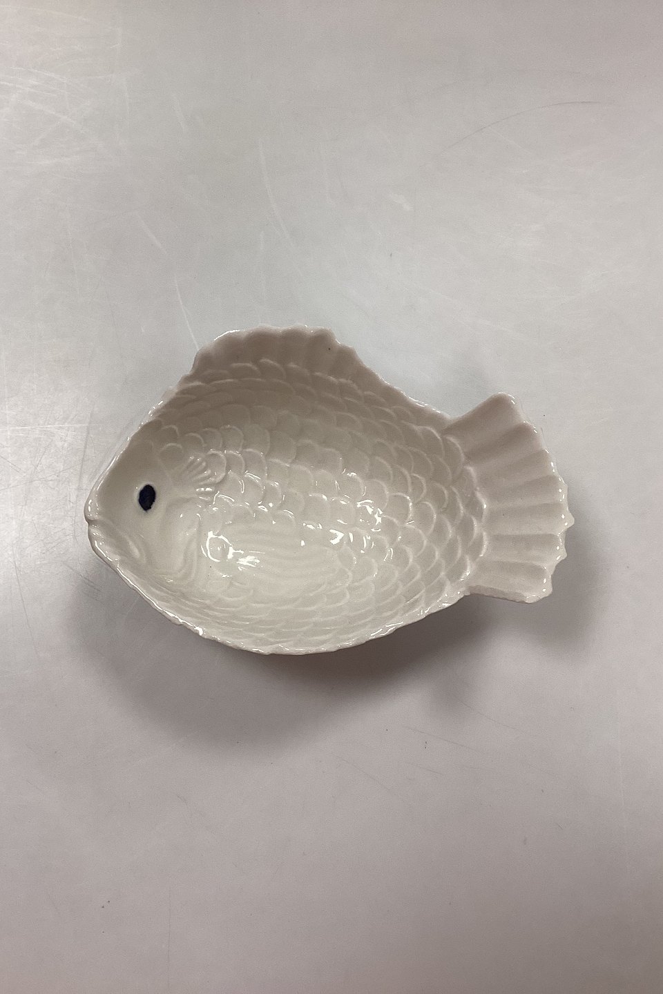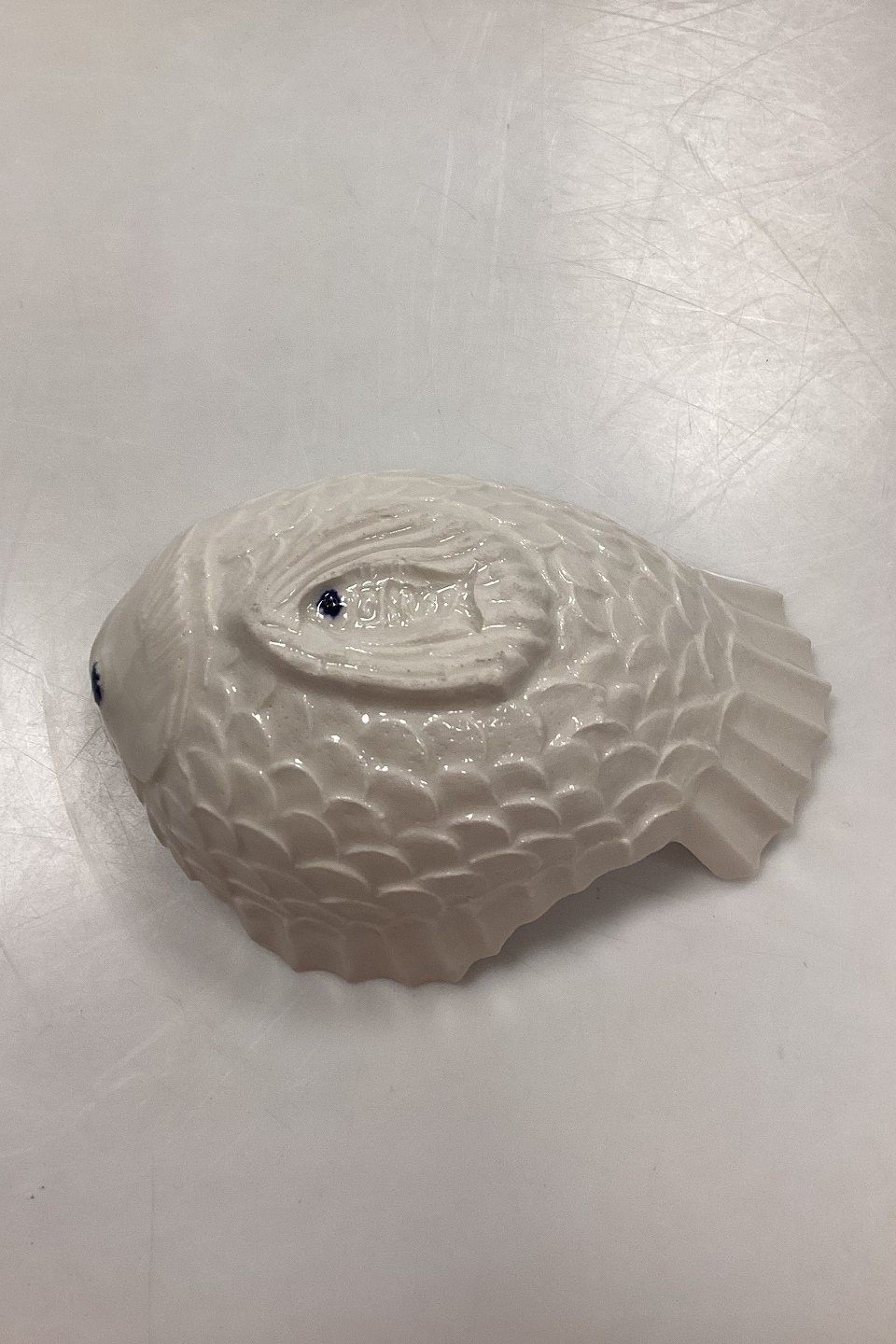 Royal Copenhagen Skål - Stor Fisk af Jeanne Grut. Hvidt stentøj med mørkeblå øjne. Signeret GRUT.