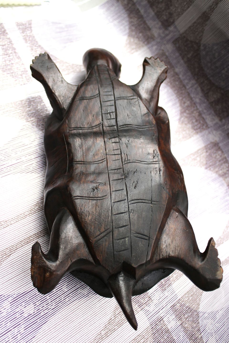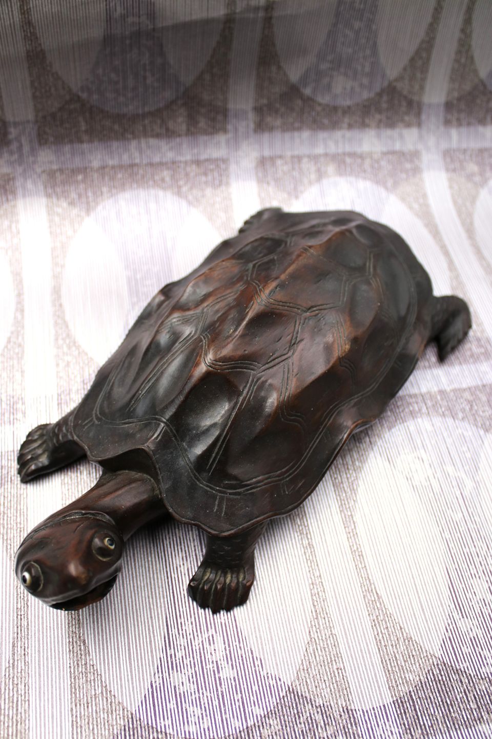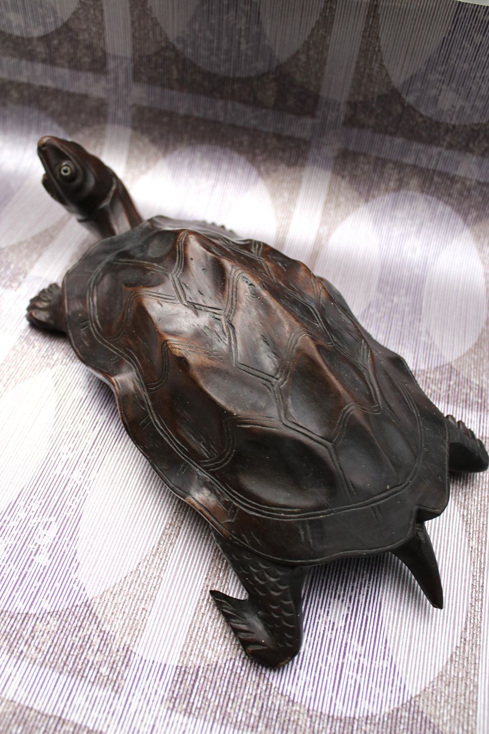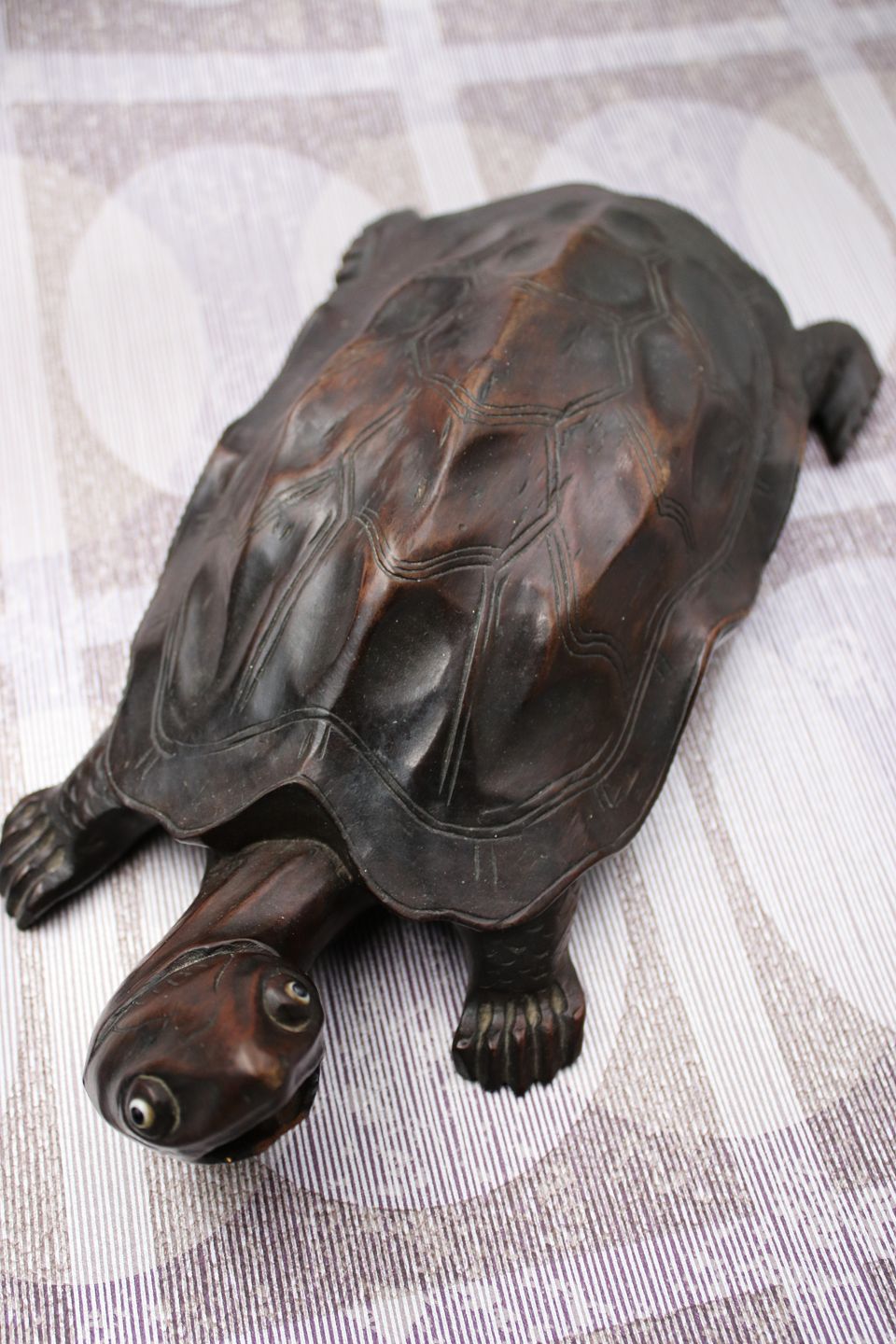 Gammel skildpadde udskåret i massivt mørkt træ med en rigtig fin patina.