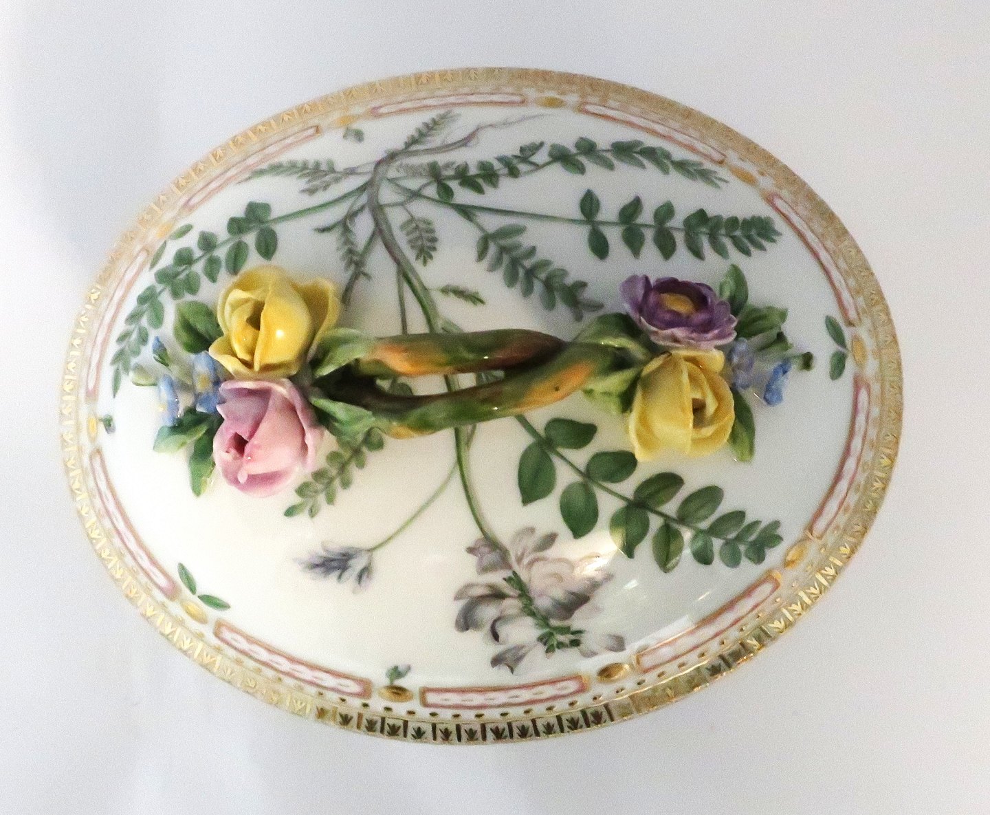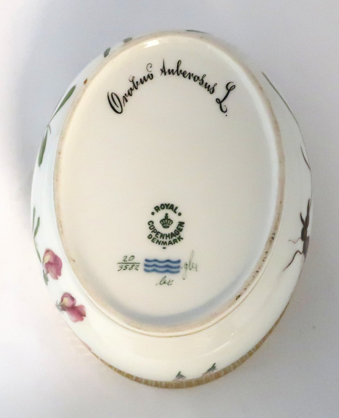 Königliches Kopenhagen. Flora Danica. Kleine Terrine / Zuckerdose. Modell 3582. Länge 15,5 cm. (1 Wahl). Orobus tuberosus L & Astragalus alpinus